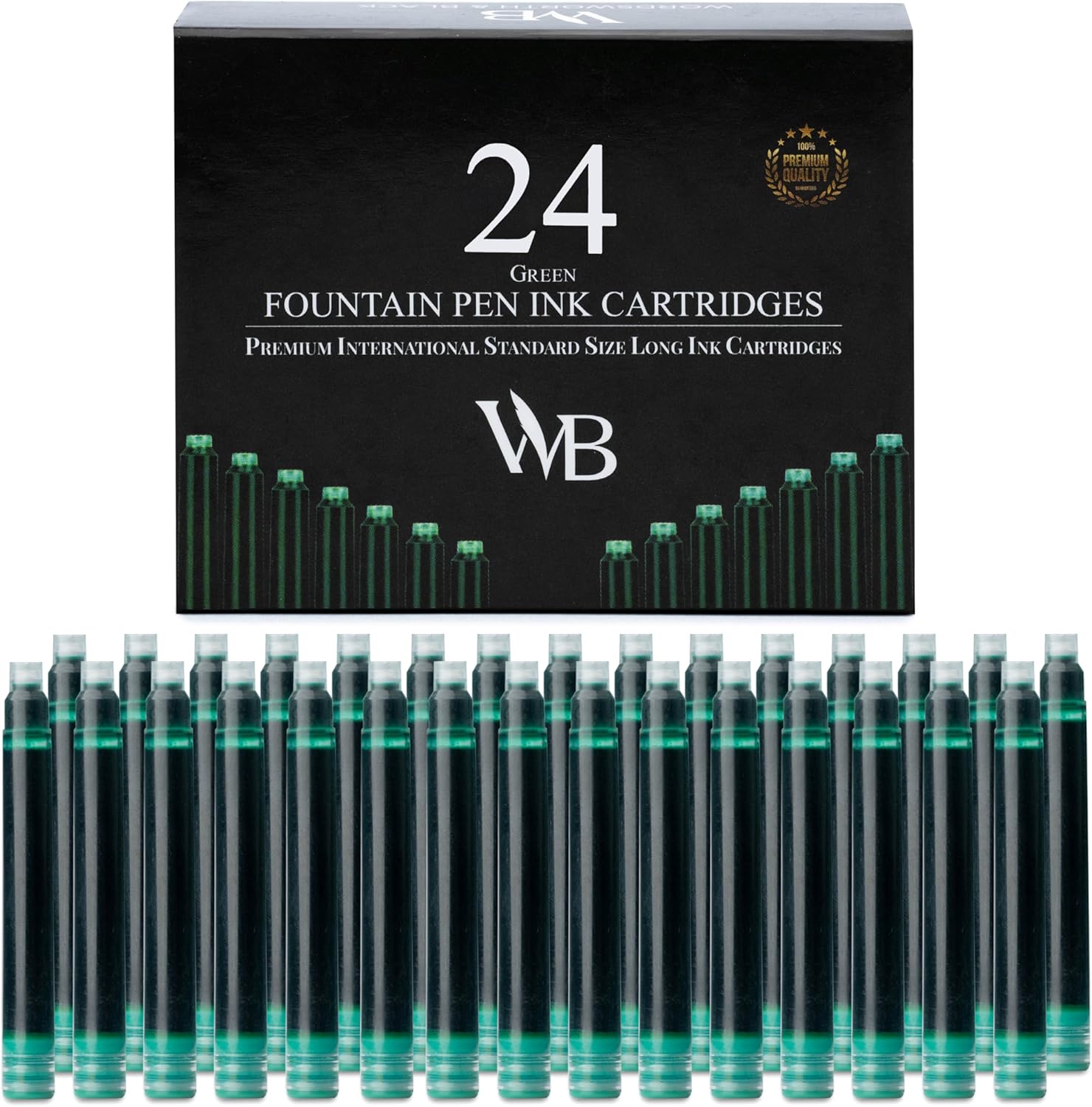 - ✅Big Value Green Pack: The 24-pack features 24 GREEN international standard size ink cartridges to fit almost all fountain pens on the market.