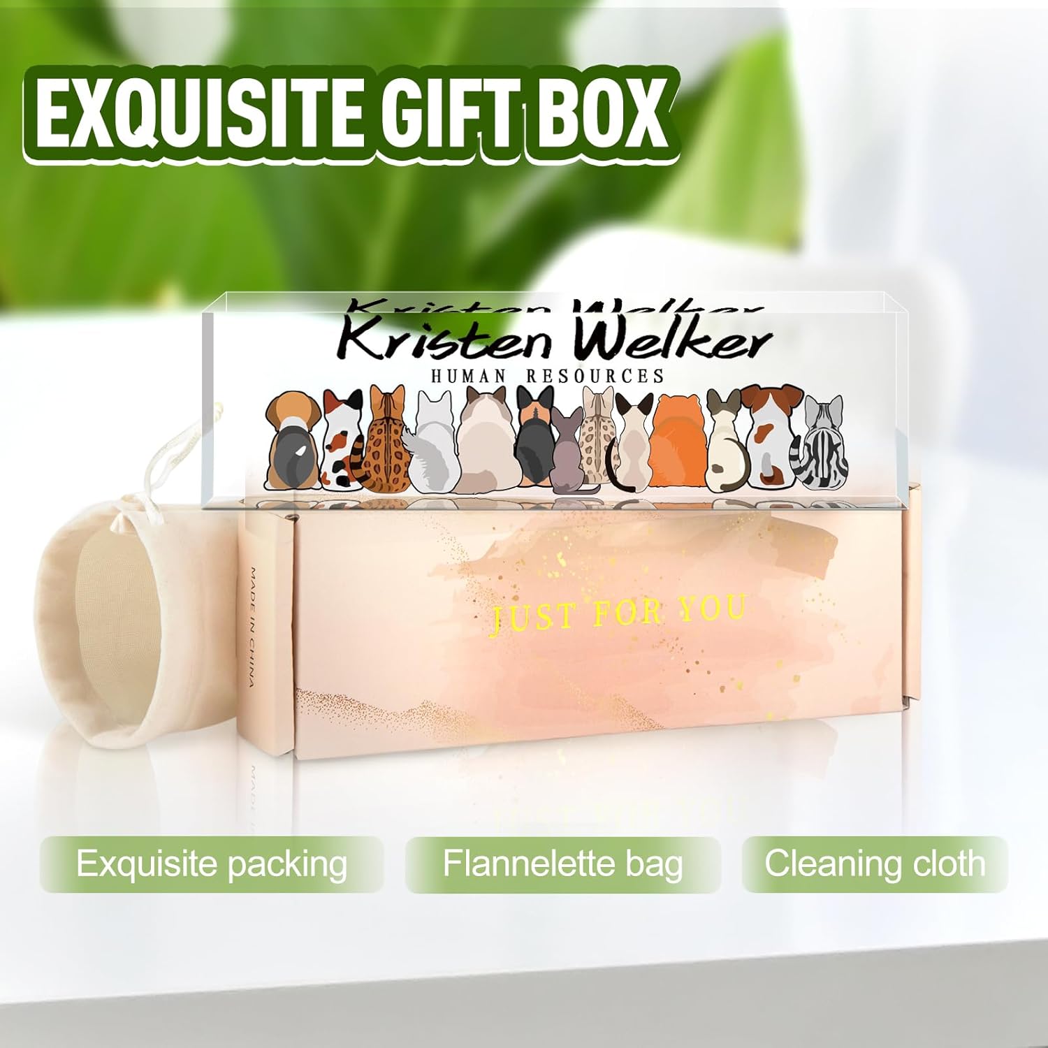Gowellly Office Desk Name Plate Personalized - Custom Acrylic Name Plates for Desk - Employee Appreciation Gifts - Office Gifts for Teacher,Boss,Nurse,Lawyer,Women Office (pet Back View)