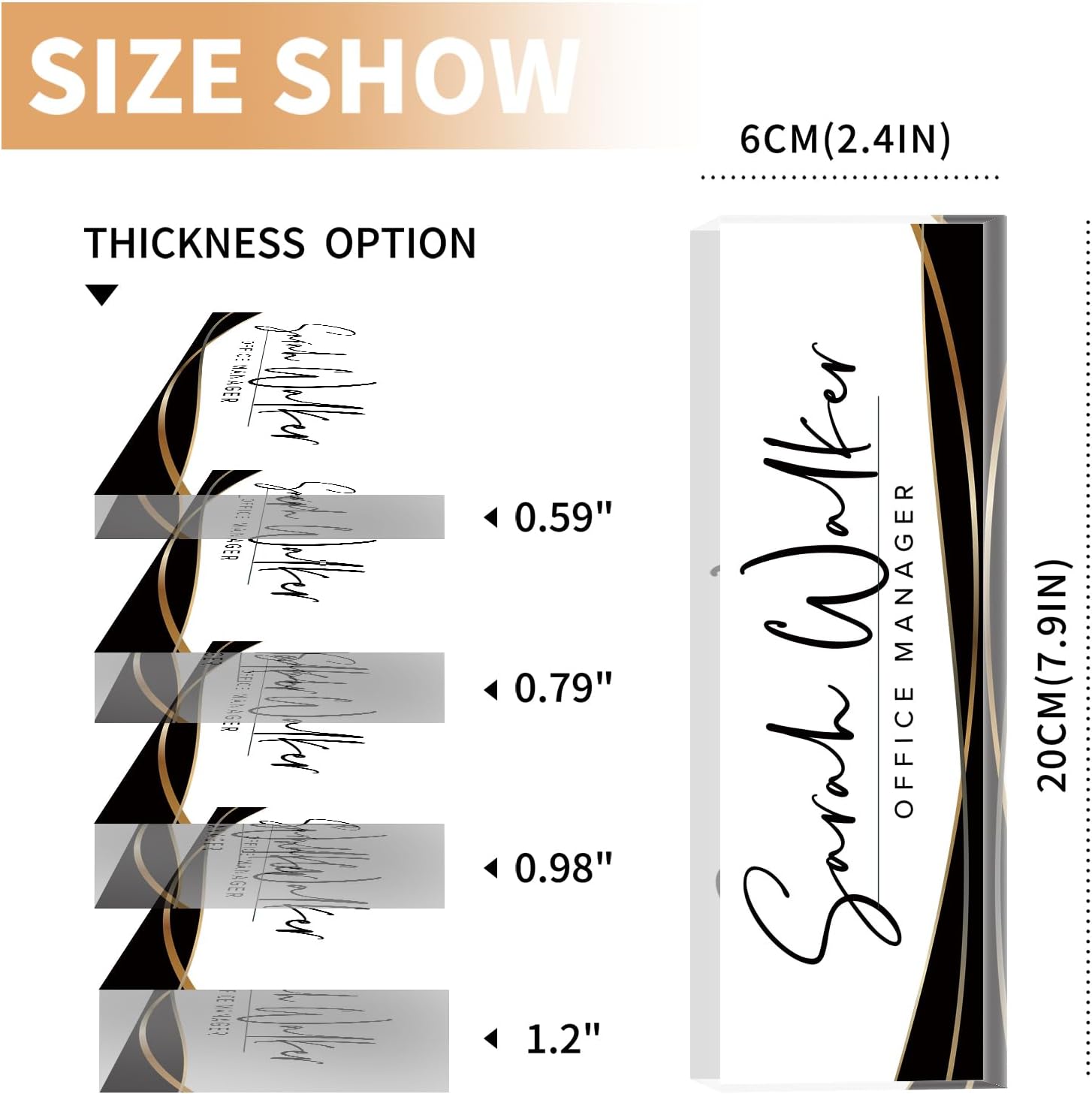 - ✨Personalized Acrylic Desk Name Plate: It's very easy to customize, you only need to choose your favorite design style, and then enter your name/title/company name/good wishes, whatever you want to display. But make sure to enter your custom text the way you want it (uppercase vs. lowercase, full title vs. abbreviation, etc.). Please make sure you write it correctly, we have professional designers to design it, you will be amazed how professional your finished nameplate looks!