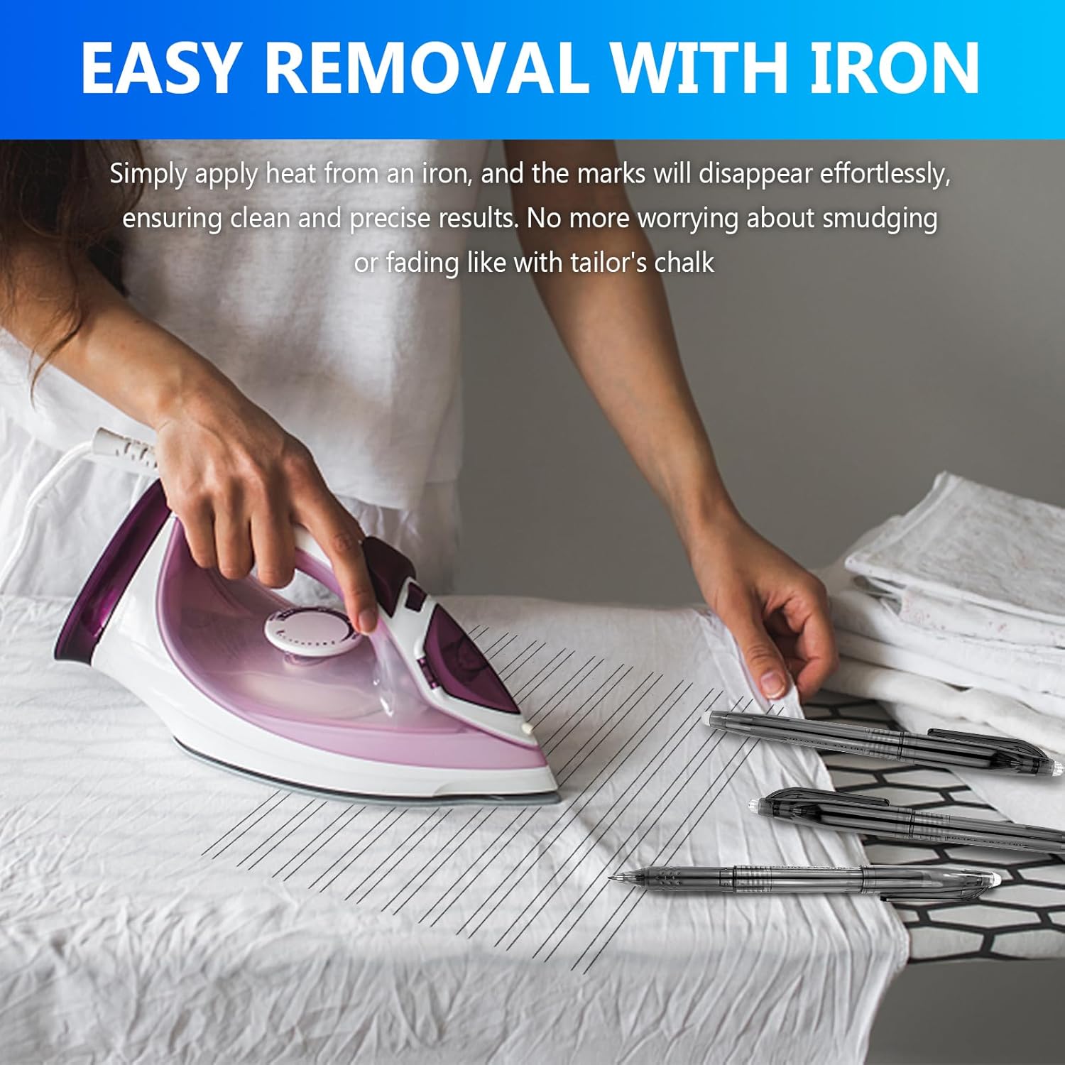 - Easy Removal with Iron: Simply apply heat from an iron, and the marks will disappear effortlessly, ensuring clean and precise results. No more worrying about smudging or fading like with tailor's chalk.
