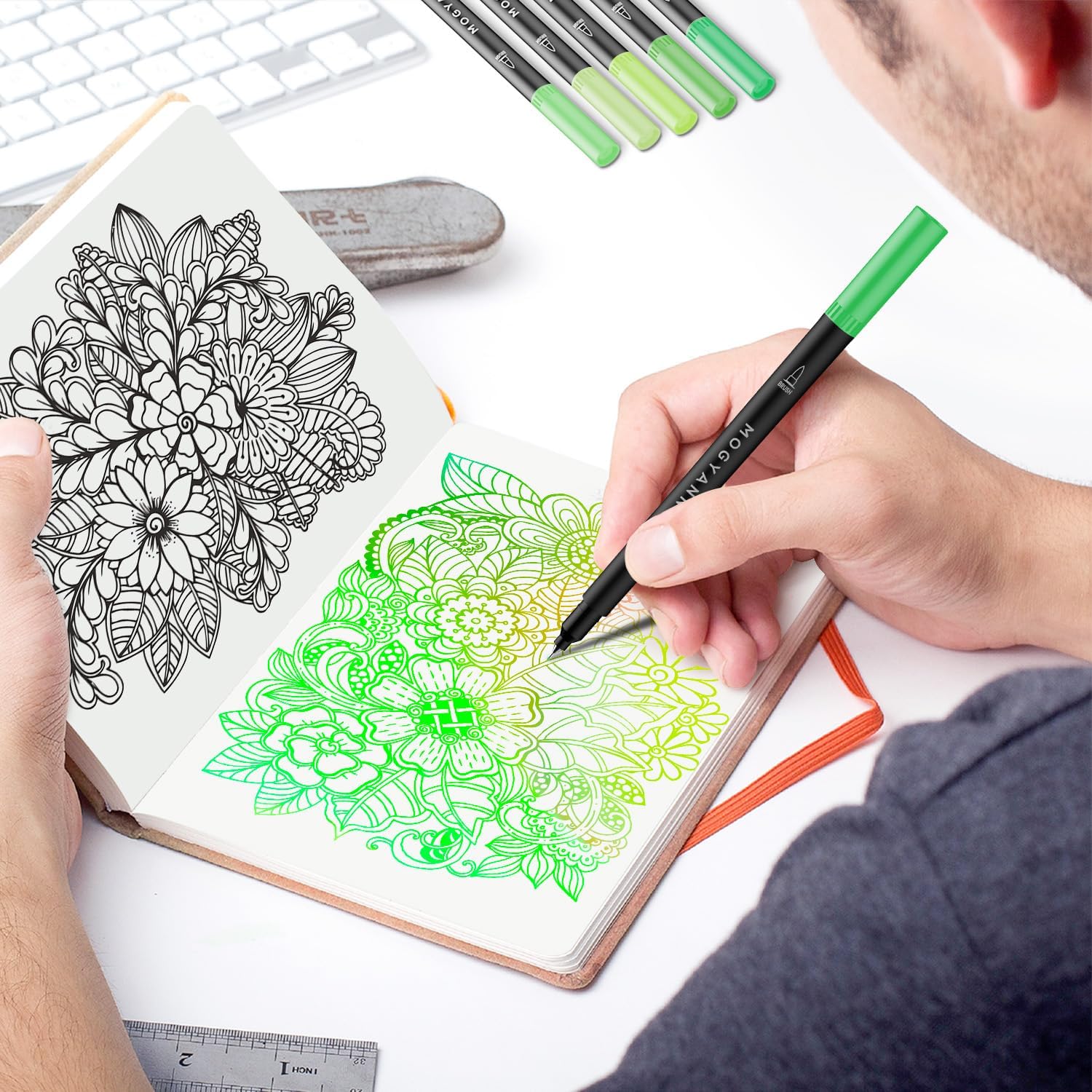 Mogyann Green Markers, 12 Pack Dual Brush Pens Drawing Markers for Art Sketching