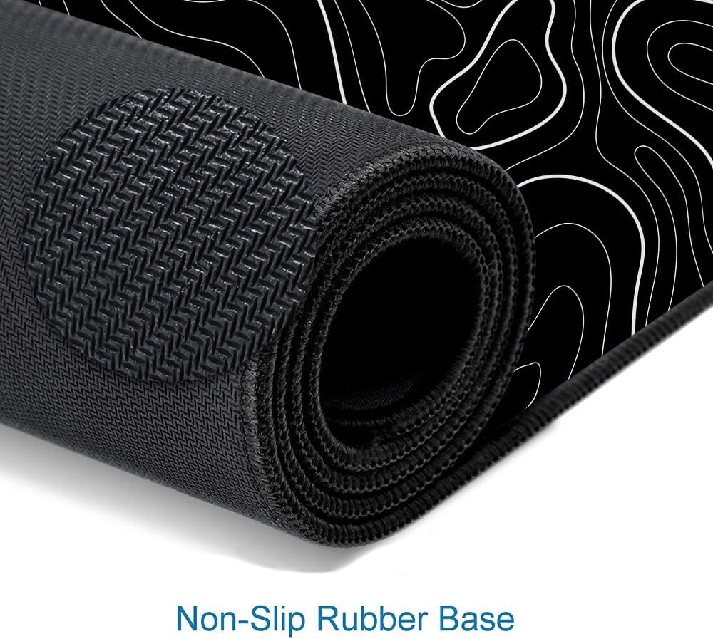Large Mouse Pad, Extended XL Gaming Mousepad, Non-Slip Rubber Base Keyboard Mouse Mat Desk Pad for Work, Game, Office, Home, 31.5 x 11.8 in, Black Minimalist Topographic Map PL230707021