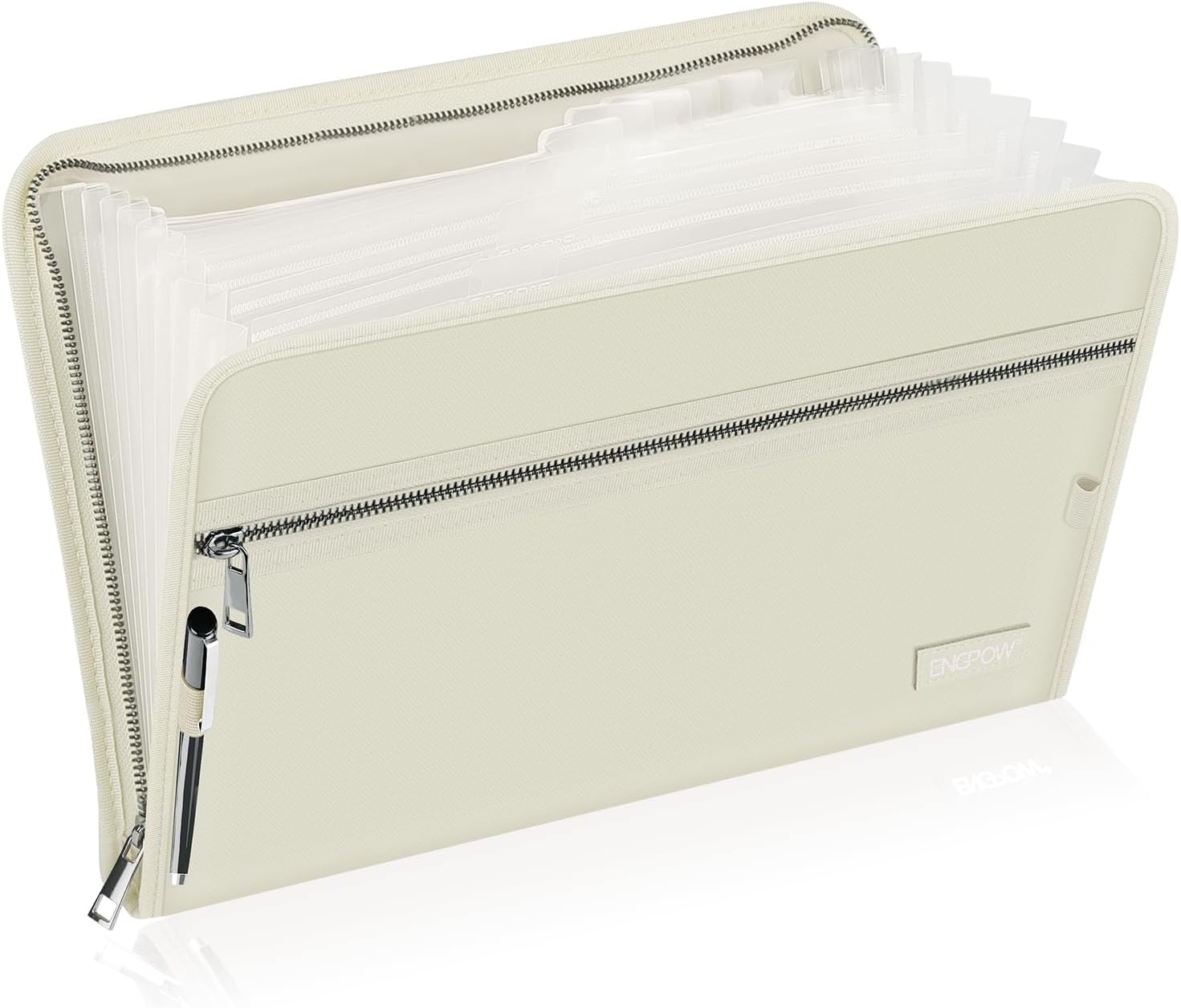 ENGPOW Accordion File Organizer,Fireproof 13 Pockets Expanding File Folder,Document Organizer Folder with Zipper&Labels,Portable Home Travel Safe Storage for Letter A4 Files and More,Beige