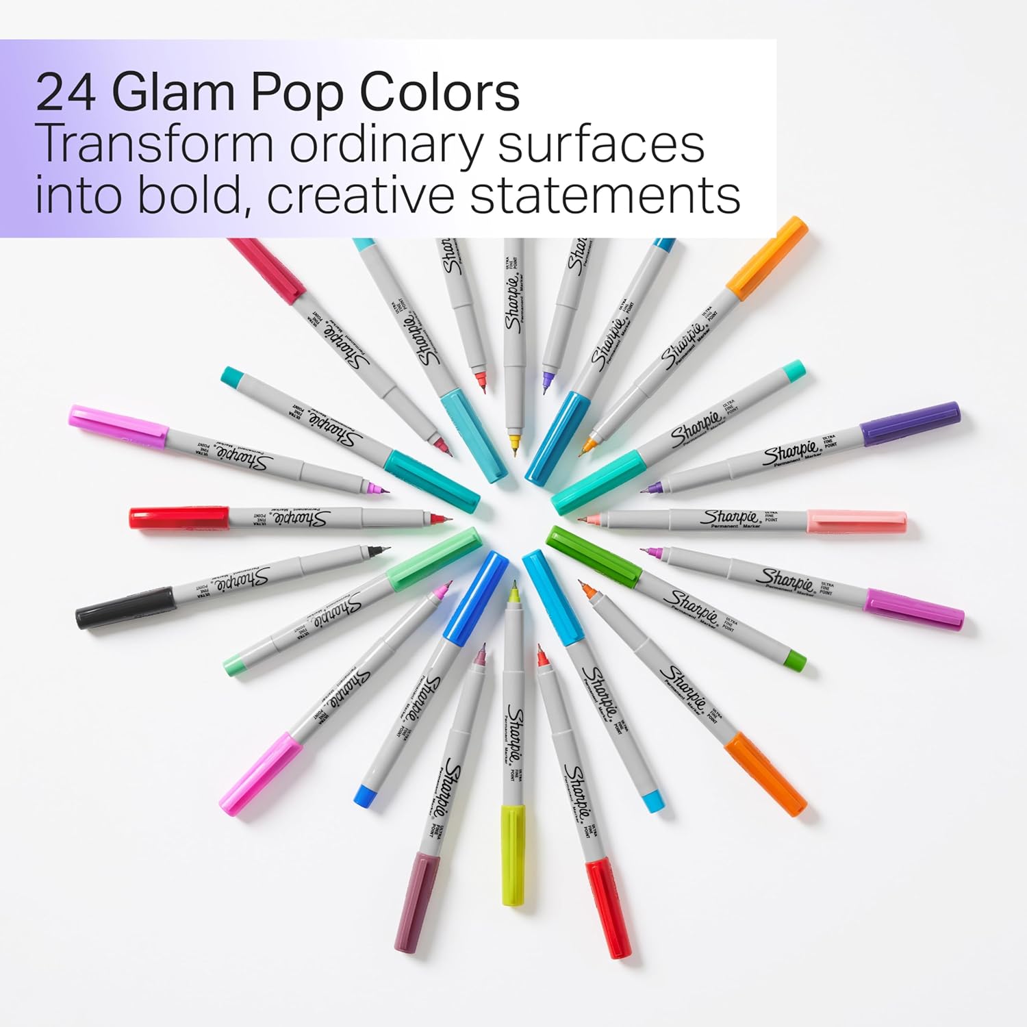 Sharpie Glam Pop Permanent Markers, Ultra Fine Tip Set, Coloring and Drawing, Resilient Ink, Assorted Colors, 24 Count