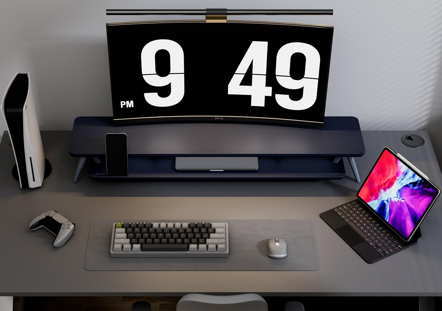- 【2 TIER DESKTOP ORGANIZER】At longest 42.5inch wide,longer size with more space. This laptop riser is big enough to support two monitors. It has 1 universal device holder slot and 3 high capacity compartments. You can easily store your office accessories & supplies under your monitor stand to keep your desktop tidy. Our monitor stand rise comes with cable management slots that can make your cord stay organized.
