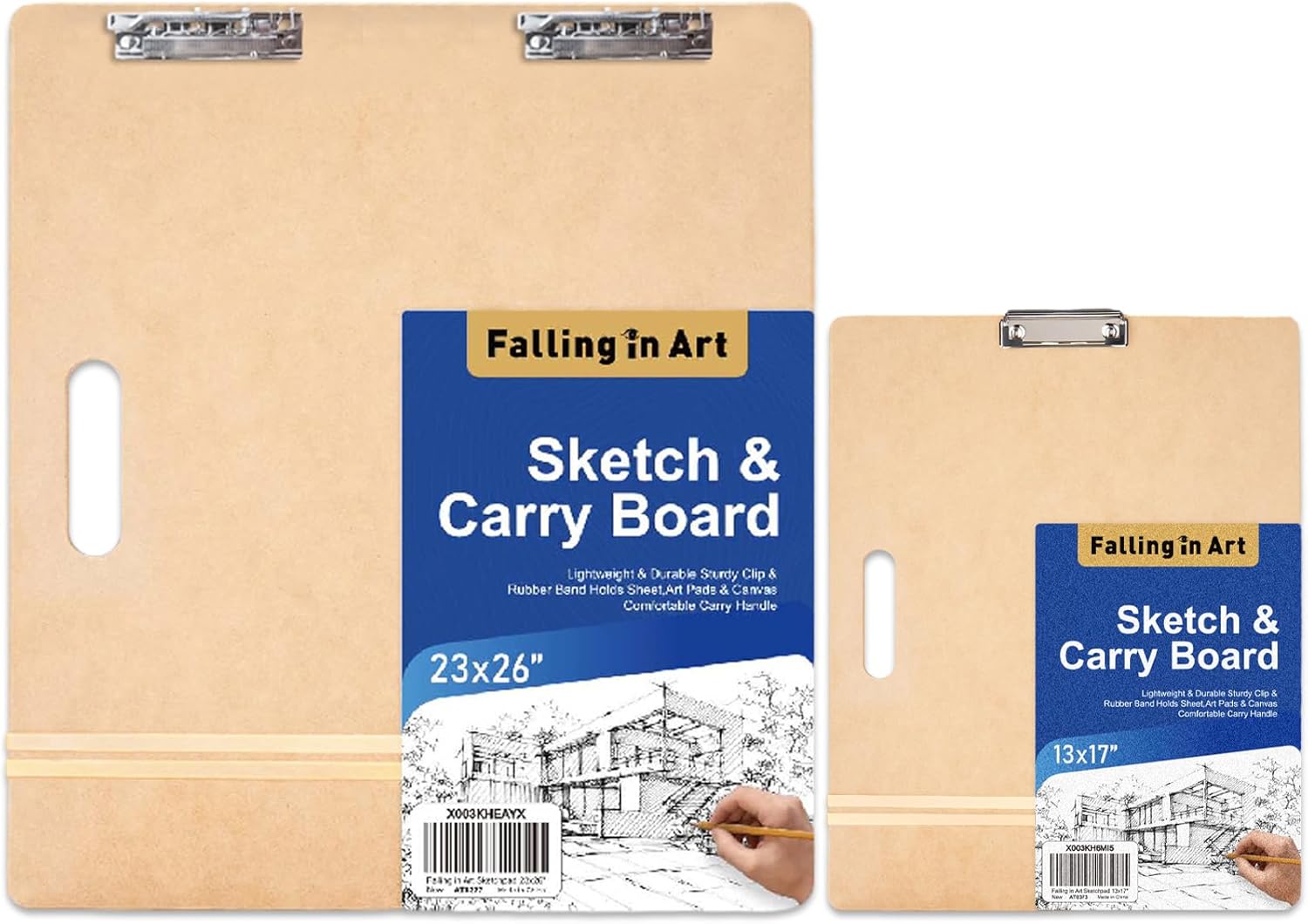 Falling in Art 13X17 & 23X26 Sketch Board Set, Drawing Tote Board for Artists with Sturdy Clip and Rubber Bands, Portable Art Clipboard for Classroom and Studio Drawing