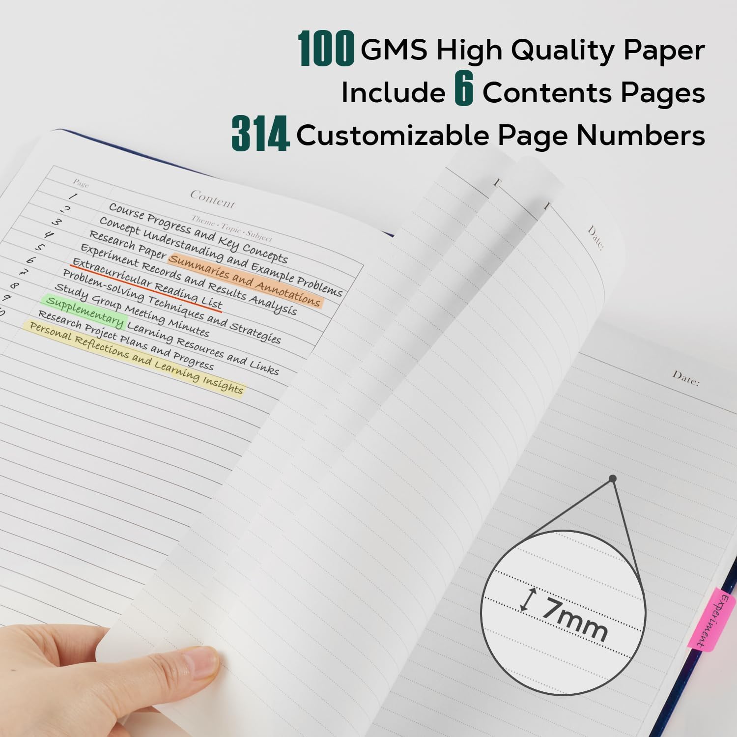 - 【320 Pages Hardcover Thick Notebook】This A5 (5.7'' X 8.4'') size lined notebook journal has a total of 320 pages (including 6 catalog pages), 7mm space classic college ruled notebook, providing you with plenty of writing space. The notebook is made of 100gsm ivory thick paper, the paper is smooth, the writing is smooth, and the ink will not bleed, suitable for most pens.