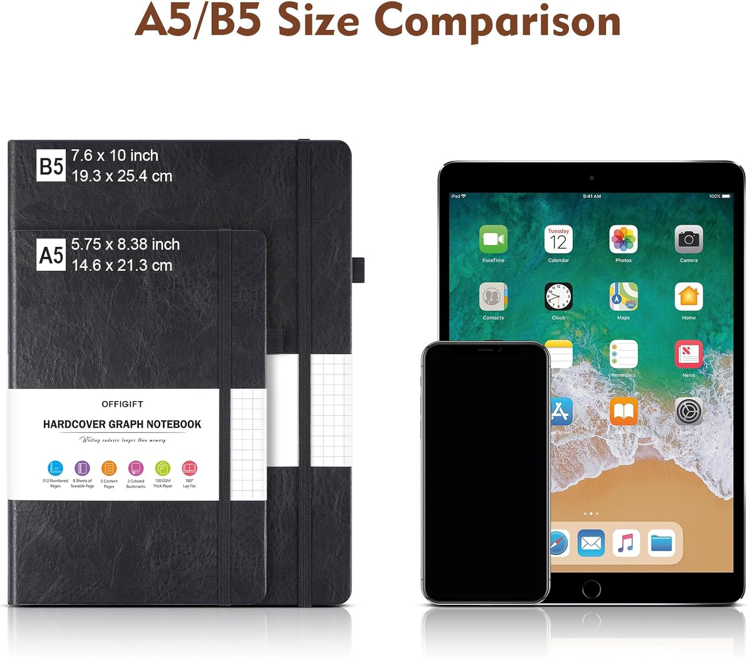 - 【Thick Paper for Writing Without Limits】Large A4 hardcover notebook (8.5'' × 11''/216mm x 283mm), total 320 pages, includes 312 numbered pages(equal to 156 sheets). 5 x 5mm graph grid paper(5 squares per inch). Our INNOVATIVE PAPER TECHNOLOGY on 100GSM thick paper ensures a perfect canvas for your ideas - no bleed, no ghosting, as confirmed by tests with various pens.