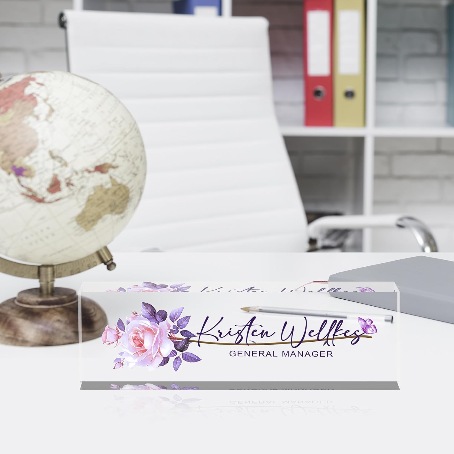 - High Quality Products: This high quality name plate for desk is made of eco-friendly acrylic material, using the most professional cutting technology, the most advanced HD printing technology and the latest adhesives, which makes the product look beautiful, strong and durable, and the problem of peeling off of the pattern never exists, so please rest assured to buy our name plate for desk.