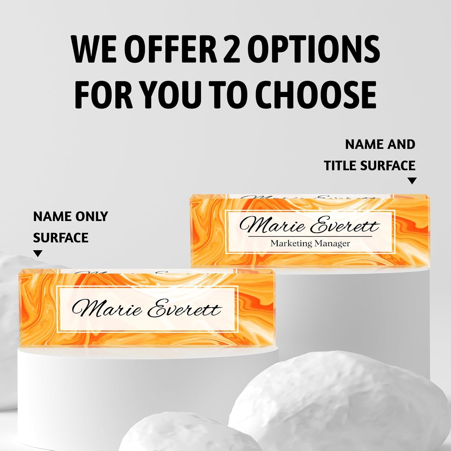 - 【Premium Acrylic Materials】:Besides personal customization, we also offer exclusive bulk gift personalization for major enterprises, creating a unique brand image. Our factory employs high-quality solid acrylic blocks to craft name plates, and utilizes the latest HD UV printing machines, ensuring that the content on the acrylic name plate is clear and resistant to fading. Whether in terms of quality or service, we cover all bases.