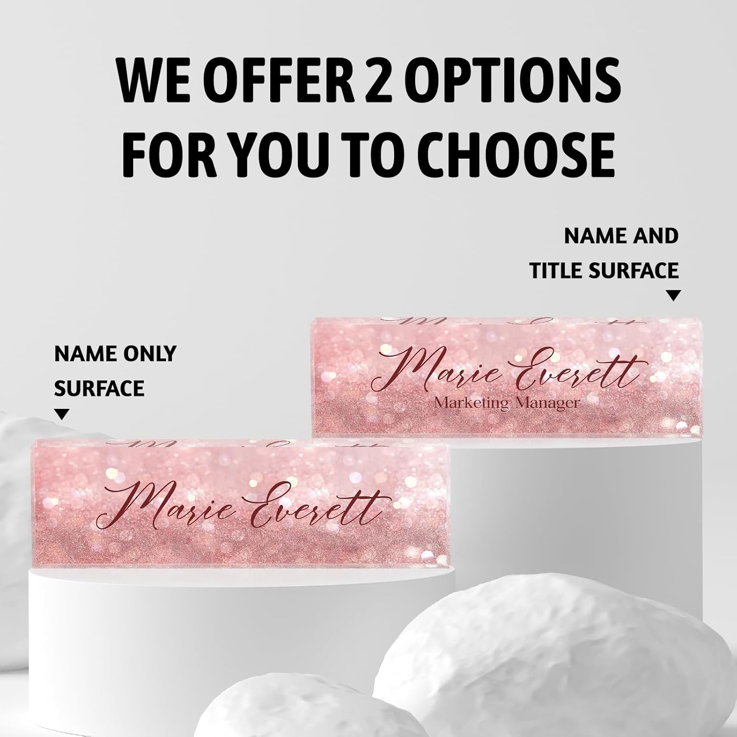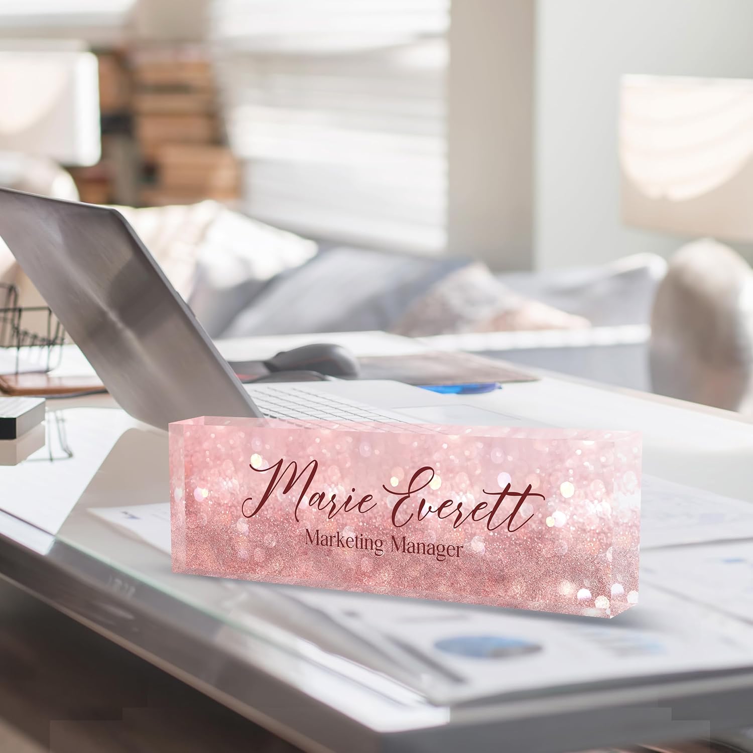 Custom Name Plate for Desk | Personalized Desk Name Plate | Personalized Boss Employee Teacher Appreciation Gifts | Acrylic Name Plate Office Desk Accessories (A-Pink Quartz)