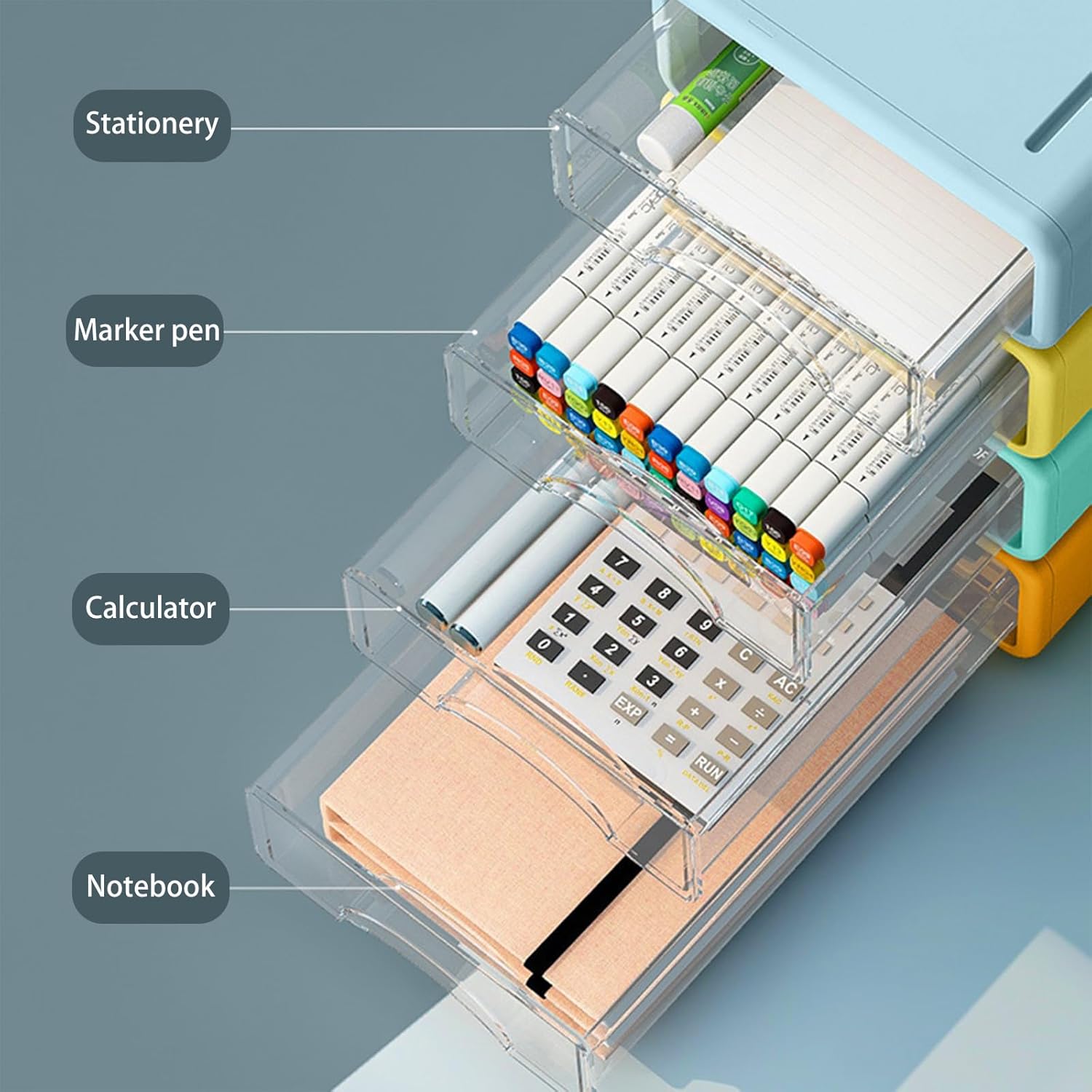 - 【Perfect Size】The size of a single box is 6.7x9.8x3in, with 3 pieces packed together, making it easy to place on a table. Each box comes with transparent drawers to help you store all office supplies and keep your desk clean.