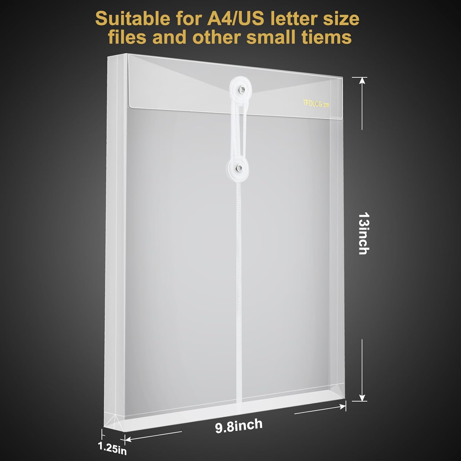 12 Pack Clear Plastic Envelopes with String Tie Closure,A4 Letter Size,TFDLCG zm Poly Reusable File Folders Project with1-1/4 Expansion,Paper Documents Organizer for Home, Office and Classroom