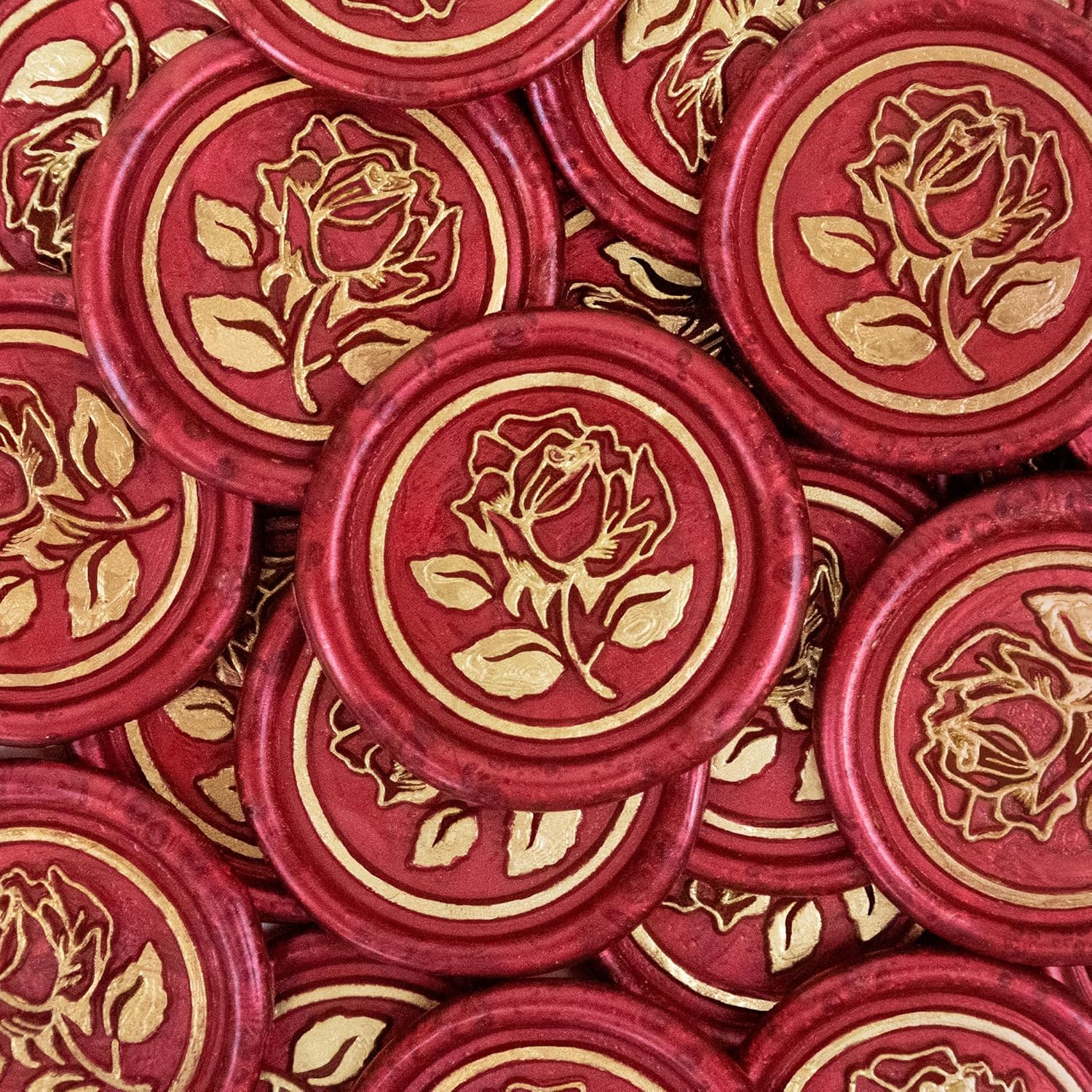- PACKAGE CONTENT: You will get 100pcs Rosemary Style , wax seal sticker made by pure hand, the wax seal sticker is 1.18 inches/30 mm in diameter, each Rosemary wax seal has almost the same size of adhesive on the back of the sticker, perfect for mailing, you don't need to worry about the strength of the adhesive at all.