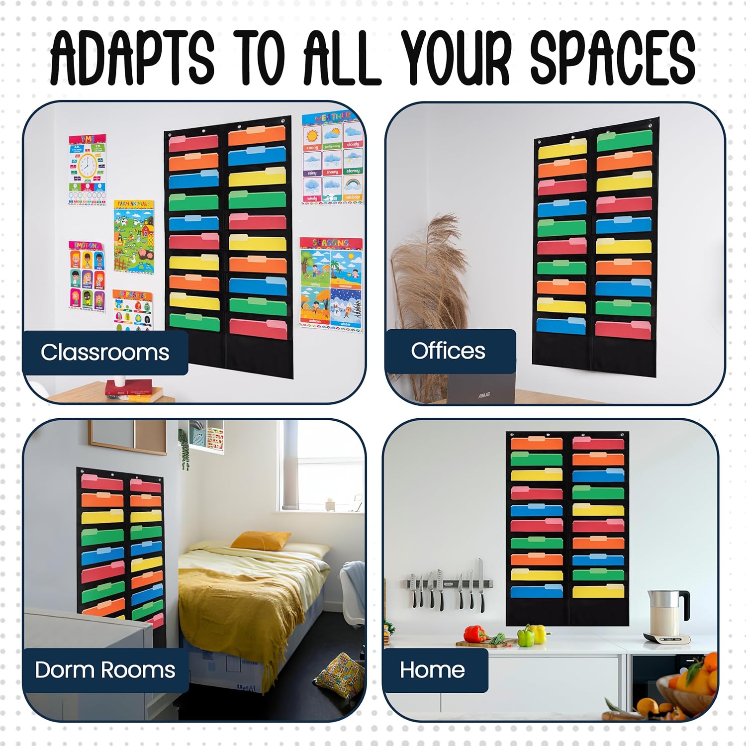 - Versatile Use - From classrooms to dorm rooms, offices to homes, our hanging file folders pocket chart fits in seamlessly. The clean and classic design adds a touch of elegance wherever you choose to use it.