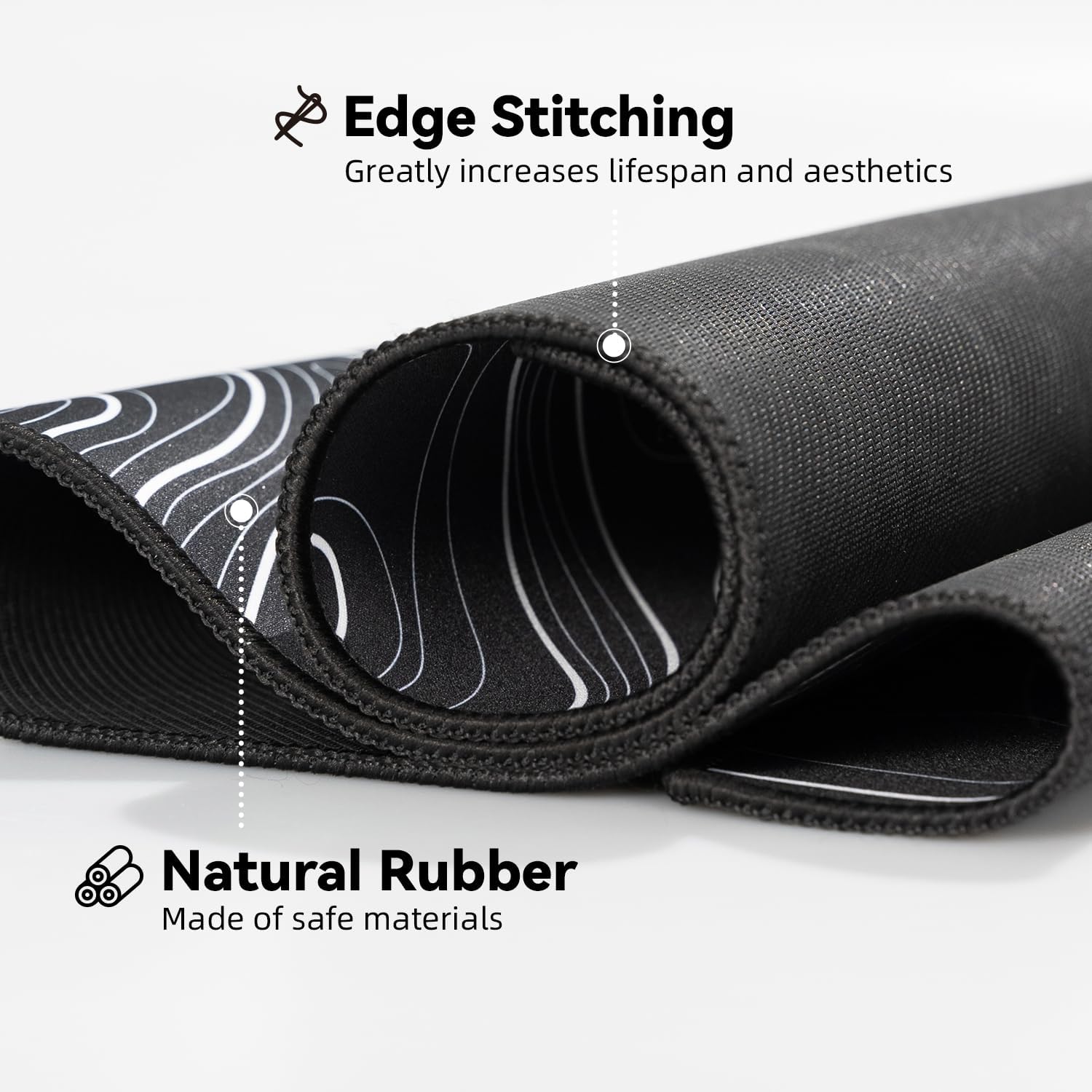- Natural Rubber with Edge Stitching: Crafted from high-quality rubber material and enhanced with neatly stitched edges, this mouse pad delivers unparalleled comfort and durability.