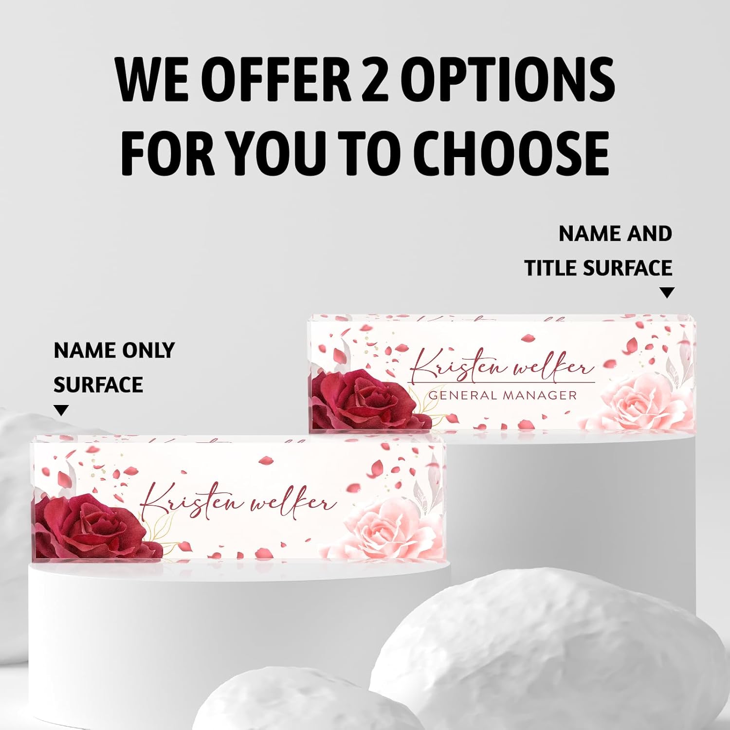 Custom Name Plate for Desk | Personalized Desk Name Plate | Personalized Boss Employee Appreciation Gifts | Acrylic Name Plate Office Desk Accessories (A-Rose)