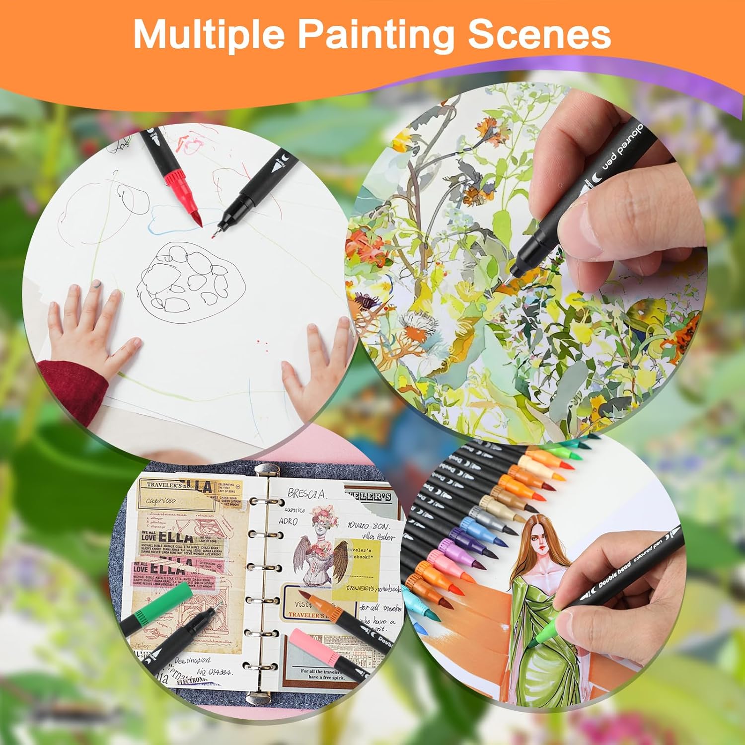 - Vibrant Colors : 80 colors duo tip brush coloring pens. The high-quality water-based ink seamlessly blends, creating beautiful coloring effects without worrying about smudges or uneven coloring. The rich and vivid colors inspire artistic creativity and allow for easy layering and mixing