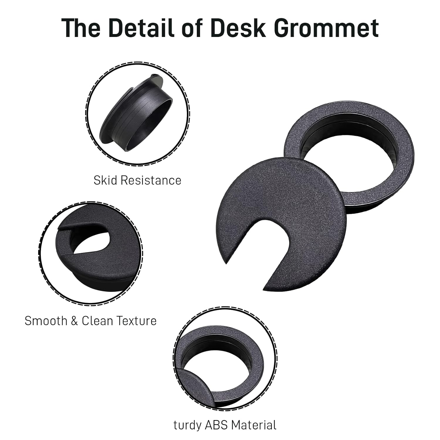 - 【High-quality Material】The desk wire hole insert is made of high-quality ABS plastic, sturdy to use, wear-resistant and corrosion-resistant. With a smooth surface, the opening on the lid can protect your wires form damage by sharp edges.