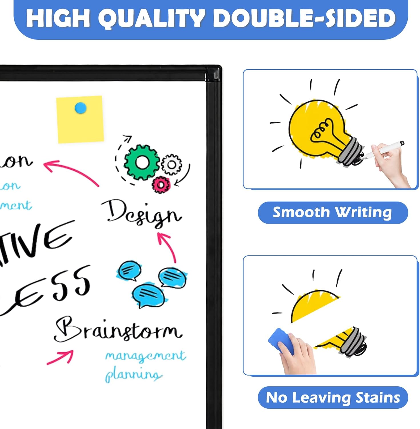 - 【Double-sided Whiteboard】- The White board made of smooth and scratch-resistant surface, easy to write on and dry erase without stain. Double sides magnetic white board design can meet all your needs to post messages and pictures on the white board for wall with magnets.