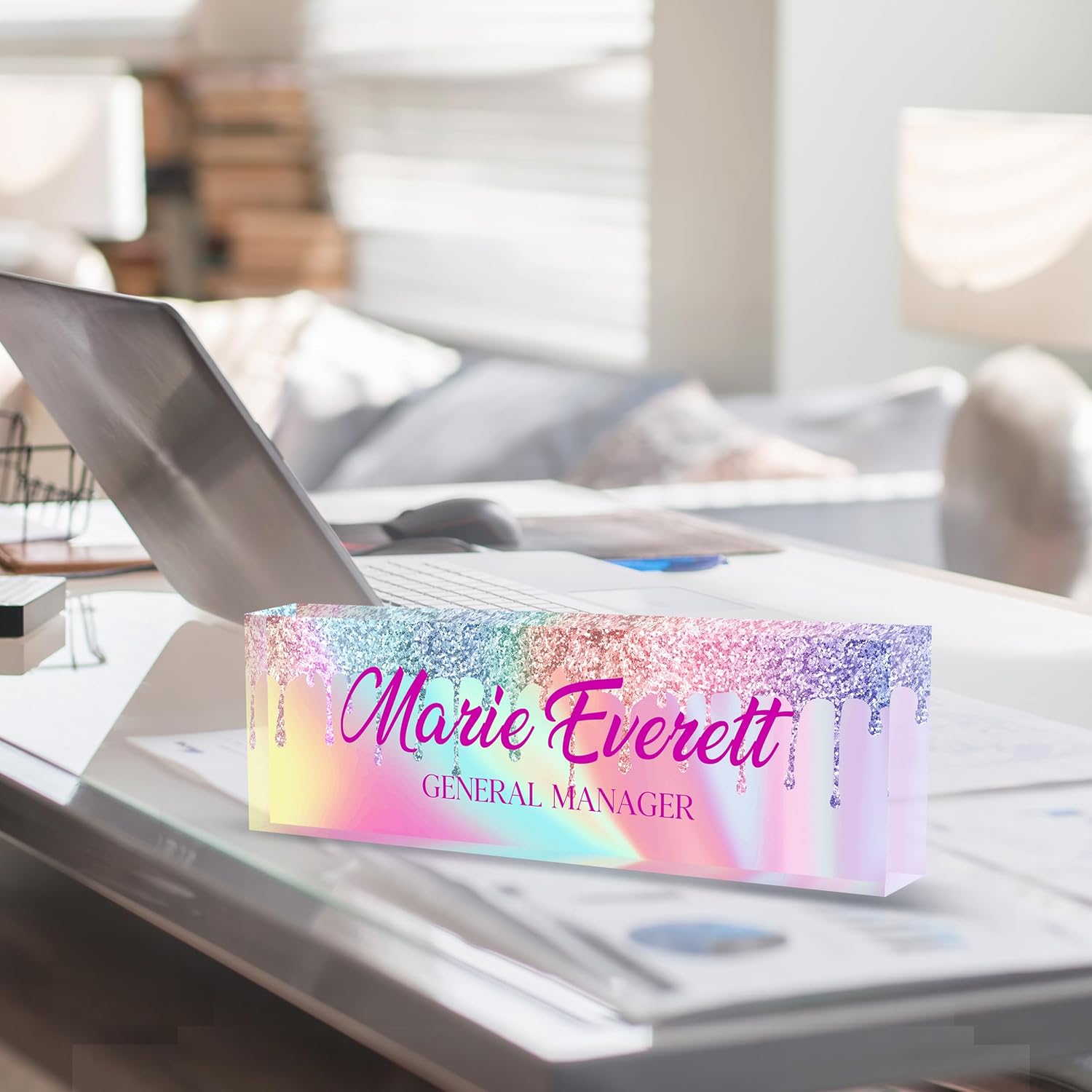 Custom Name Plate for Desk | Personalized Desk Name Plate | Personalized Boss Employee Appreciation Gifts | Acrylic Name Plate Office Desk Accessories (A-Colored Quartz)