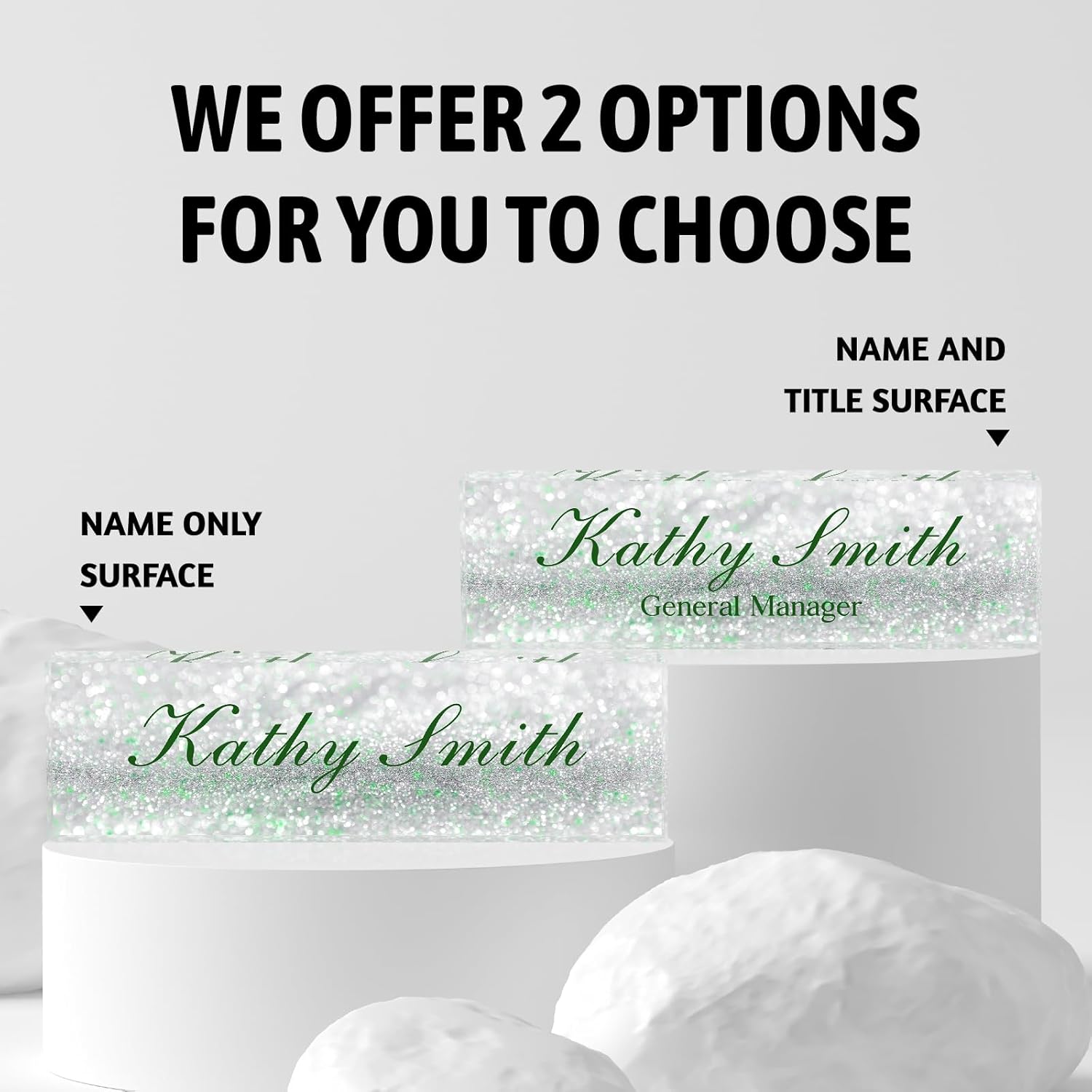 Custom Name Plate for Desk | Personalized Desk Name Plate | Personalized Boss Employee Appreciation Gifts | Acrylic Name Plate Office Desk Accessories (A-Silver Green Crystal)
