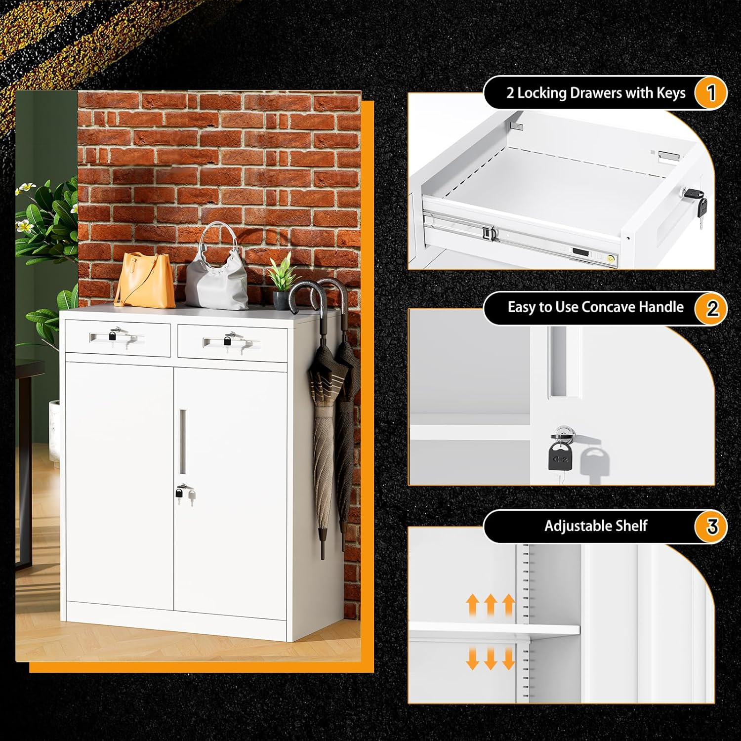 - [𝗨𝗣𝗚𝗥𝗔𝗗𝗘𝗗 𝗟𝗢𝗖𝗞𝗜𝗡𝗚 𝗦𝗬𝗦𝗧𝗘𝗠] -- Greenvelly metal storage cabinet adopts a new upgraded and safer three-point interlocking system. Multiple locked areas such as two drawers can store different tools or files. The lockable metal storage cabinet provides higher security for your important items and documents, making it perfect for use in offices, garages, and schools.