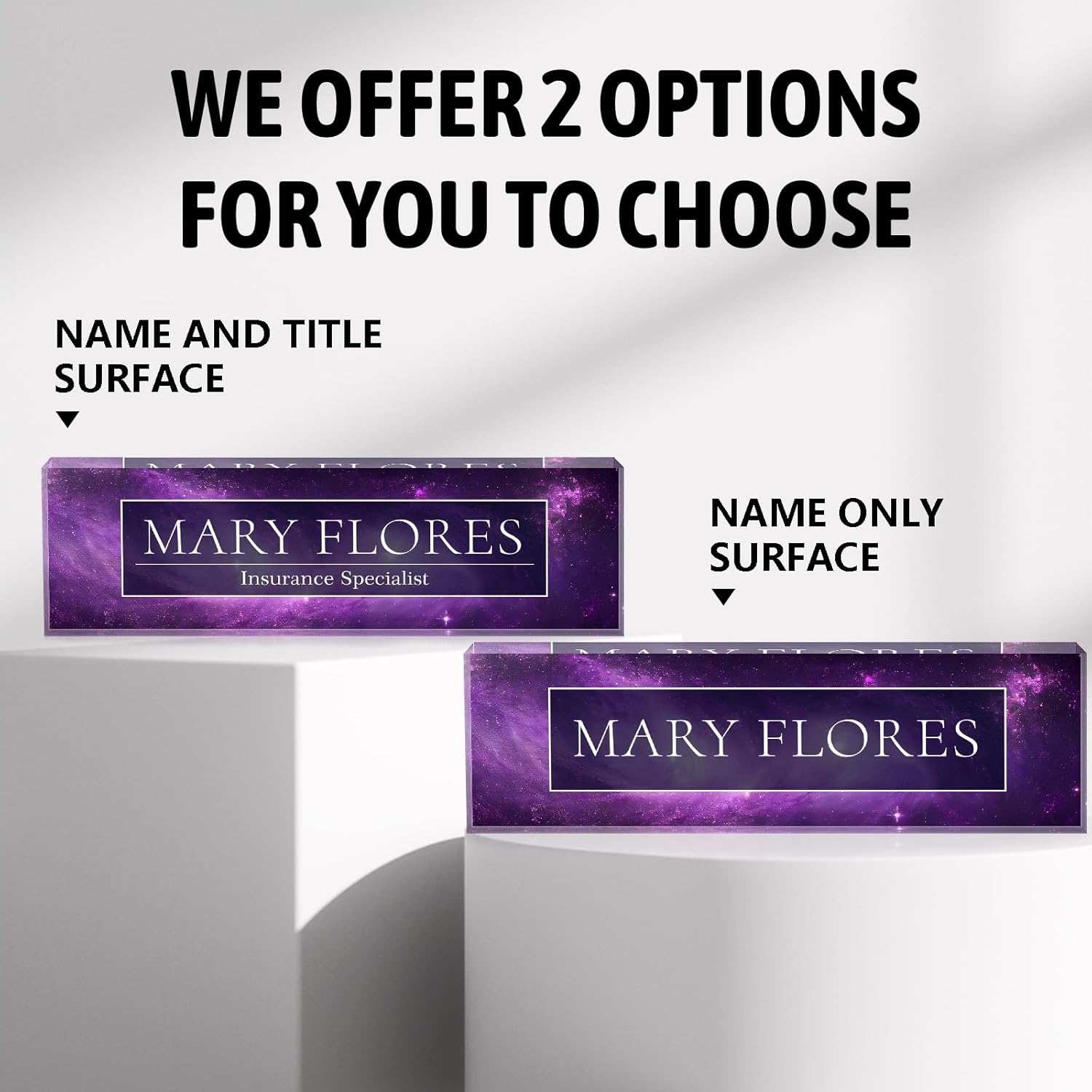 - High Quality Products: This high quality custom name plate for desk is made of eco-friendly acrylic material, using the most professional cutting technology, the most advanced HD printing technology and the latest adhesives, which makes the product look beautiful, strong and durable, and the problem of peeling off of the pattern never exists, so please rest assured to buy our name plate for desk.