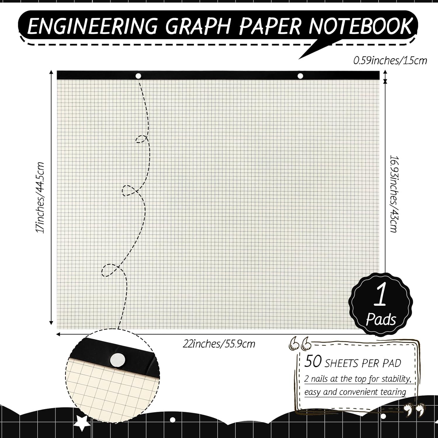 - Proper Size: the page size of graph paper pads is 22 x 17 inch/ 55.9 x 44.5 cm landscape, which provides freedom to draw charts and graphs or write notes; They have crisp 1/4 inches cross section lines, more in line with the professional requirements of sketching
