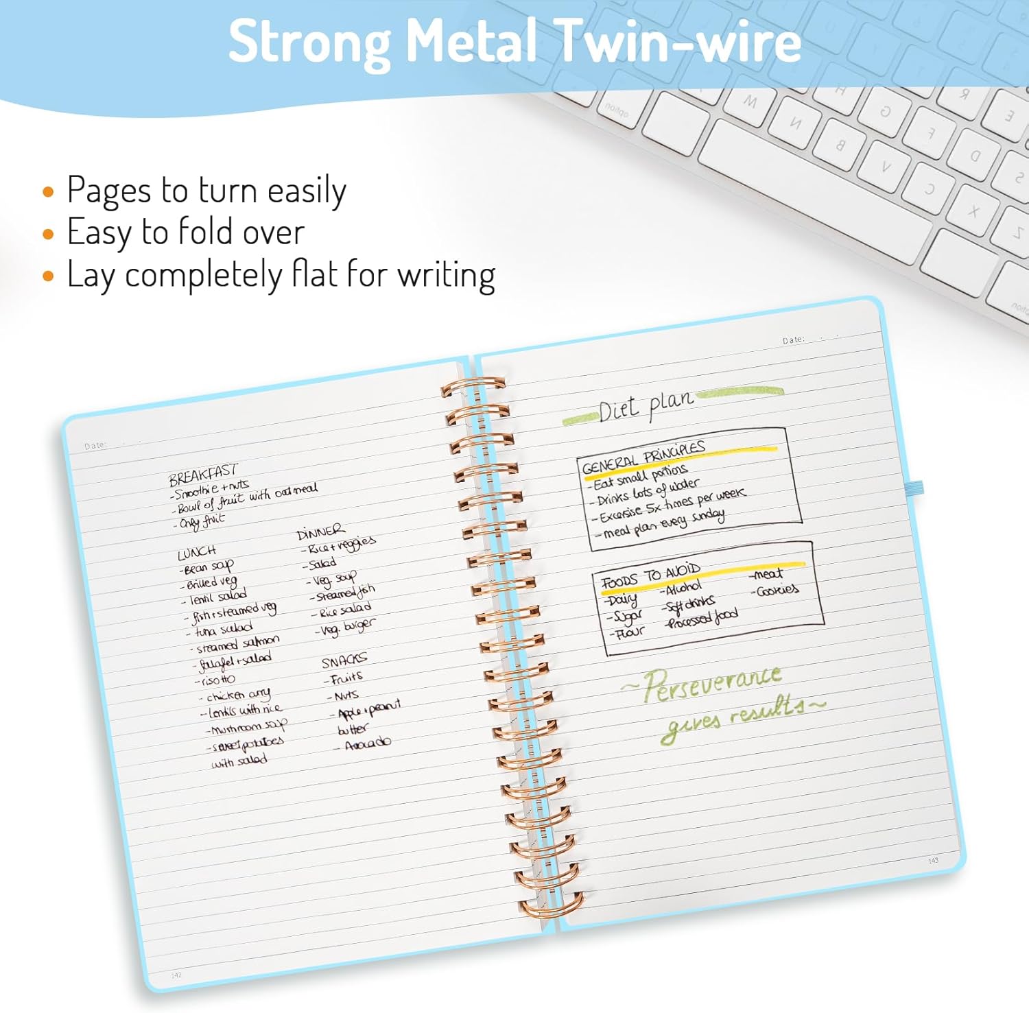 - Strong Metal Twin-wire: Feature a super durable Golden double wire spiral binding with heavy-duty hardcover; making it easy to fold over and laying the notebook totally flat easily, giving you a better writing experience. The Professional durable hardcover will protect your journal to last for years. Product Dimensions: 11 in (L), 8.5 in (W), 1.0 in (H).