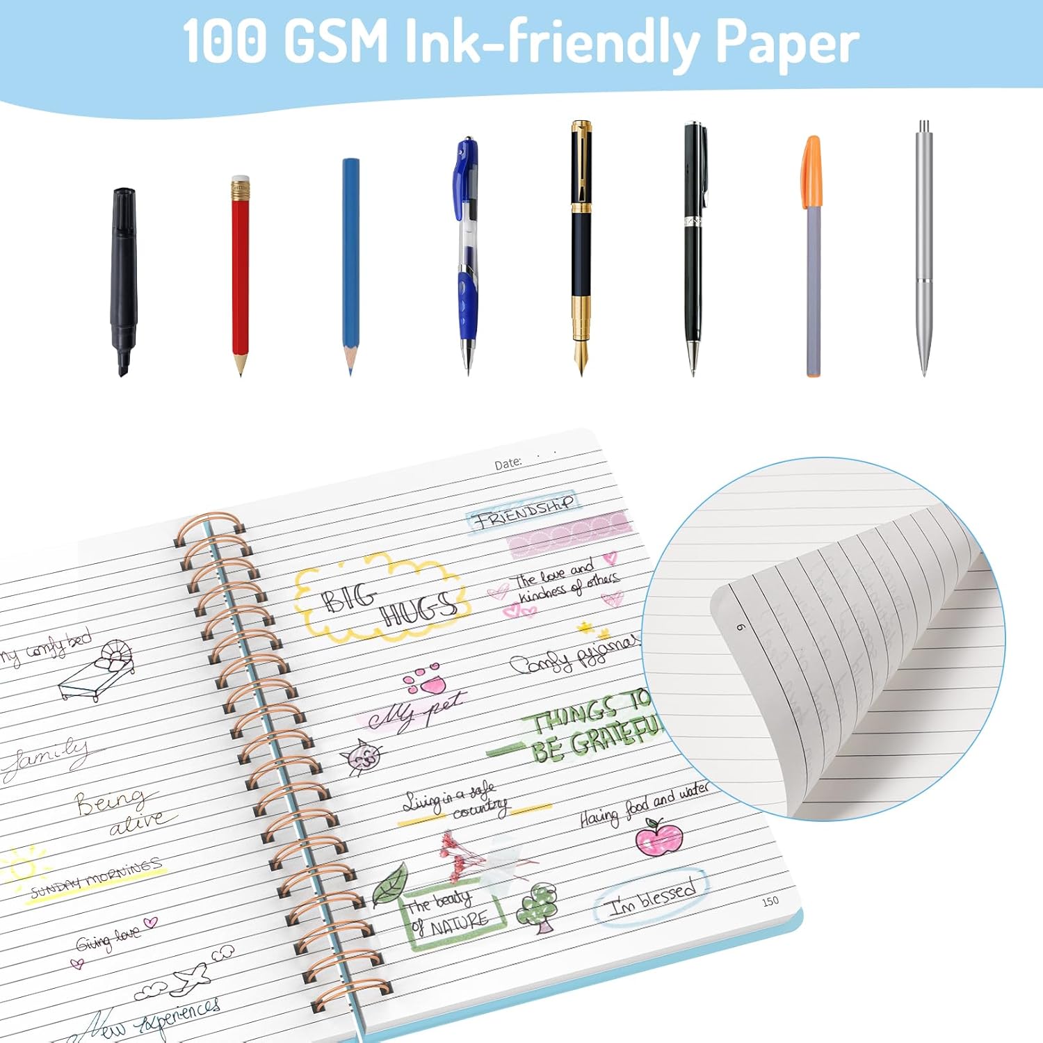 - 100 GSM Ink-friendly Paper: the pages are very thick which avoid ink bleeding through, ghosting. Suitable for most pen types, such as ballpoint pens, fountain pens, gel pens and so on. Allowing you to write on both sides of every page to maximize your usable space.