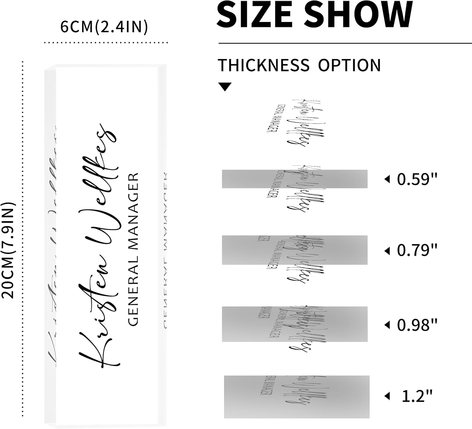 - High Quality Products: This high quality desk name plate is made of eco-friendly acrylic material, using the most professional cutting technology, the most advanced HD printing technology and the latest adhesives, which makes the product look beautiful, strong and durable, and the problem of peeling off of the pattern never exists, so please rest assured to buy our acrylic name plate.