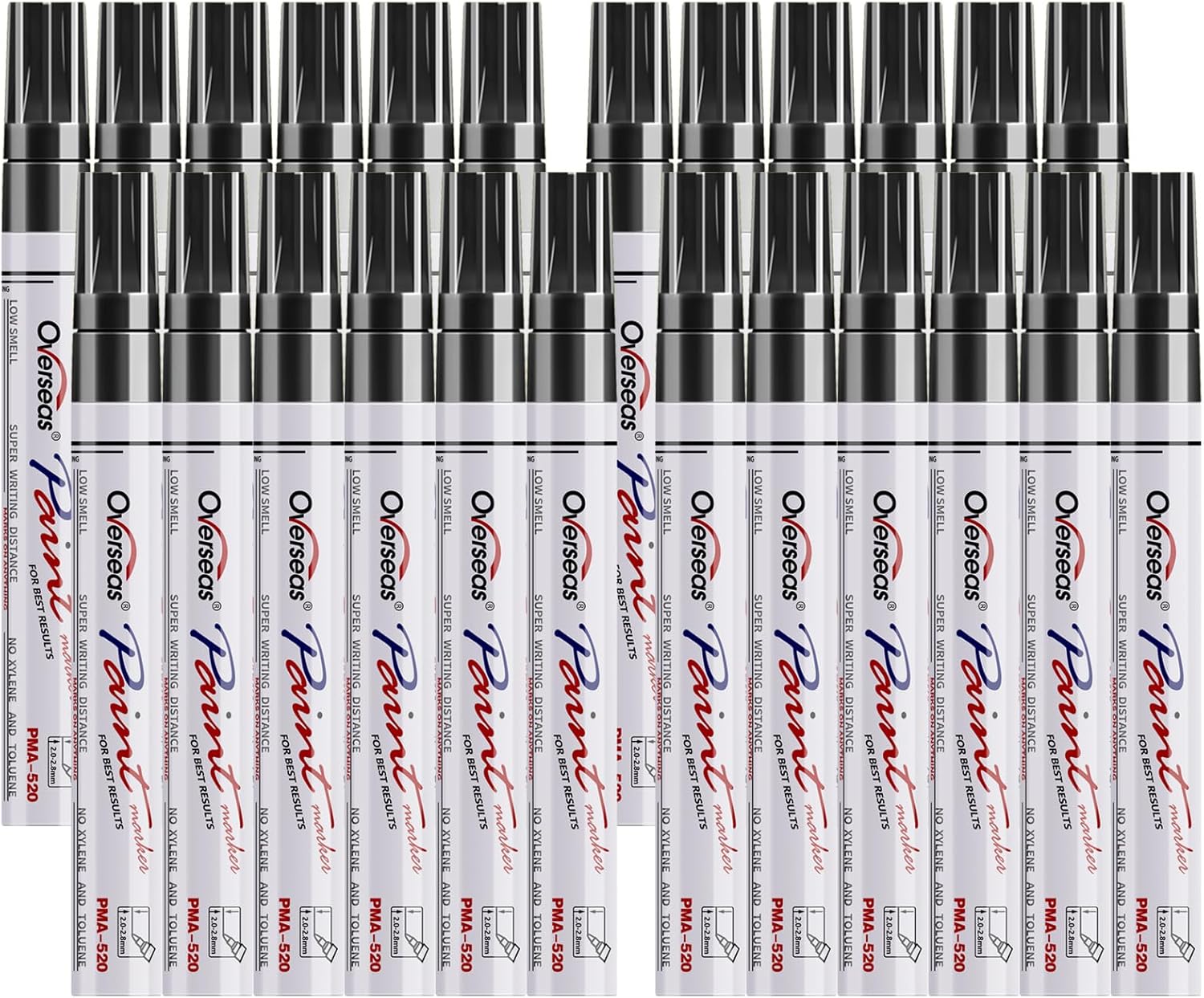 Overseas Black Paint Pens Permanent Markers 24 Pcs, Oil Based Paint Markers Set, Quick Drying, Waterproof, Medium Tip Marker Pens for Metal, Rock, Wood, Plastic, Canvas, Glass, Stone, Rubber, Paper