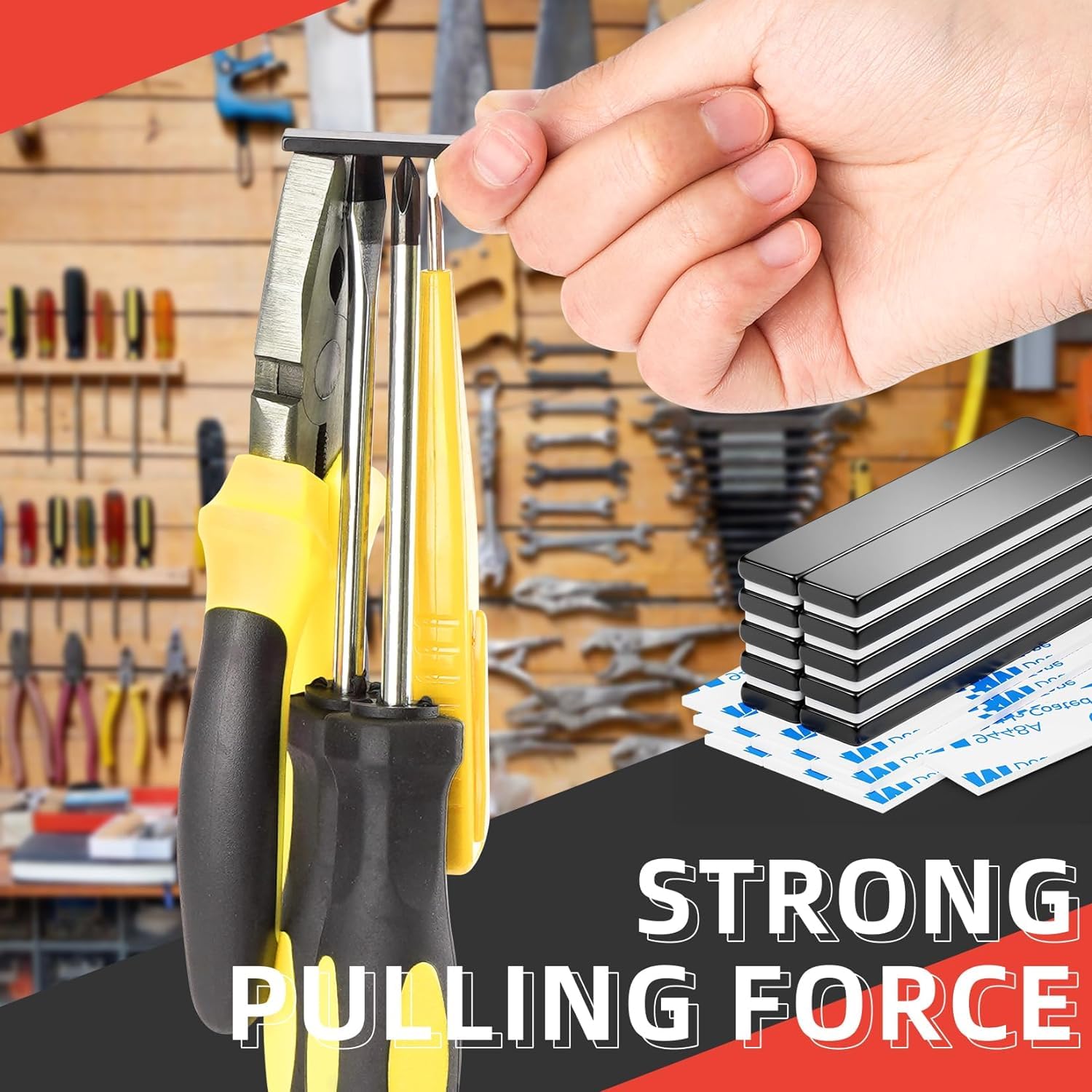 Grtard 24 Pack Strong Neodymium Bar Magnets Heavy Duty, Powerful Permanent Rare Earth Magnets with Double-Sided Adhesive, Super Strong Magnets Bar for Kitchen, Fridge, DIY, Craft, Garage - 60x10x3mm