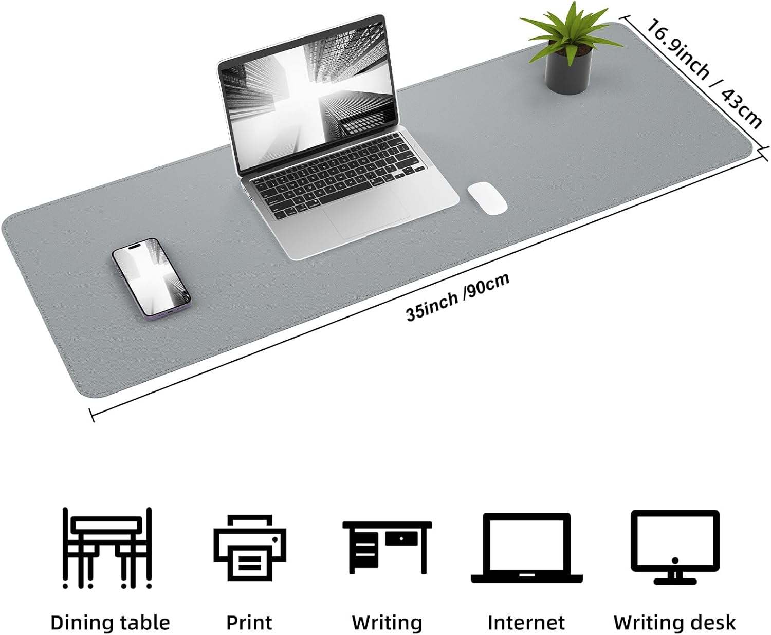 Desk Mat,35.4" x 17" Leather Desk mat,Double-Sided Desk Pad,Desk matt for Desktop,Large Mouse Pad,Office Desk mat,Waterproof Desk Blotter pad for Office&Home(Light Grey+Cork)