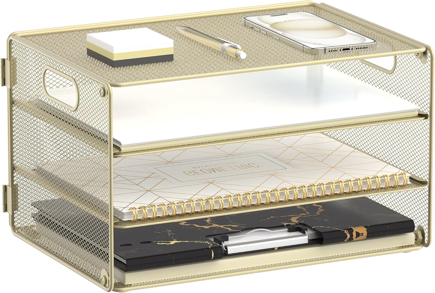 - [3-Tier Design] "Daltack" 3 tier gold desk organizer tray is a wonderful desktop paper organizer for your office, home, school, or dorm. Our paper organizer for desk is simple and stylish, keep your desk organized in a different new way.