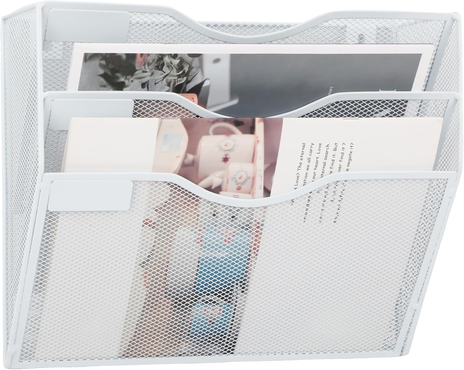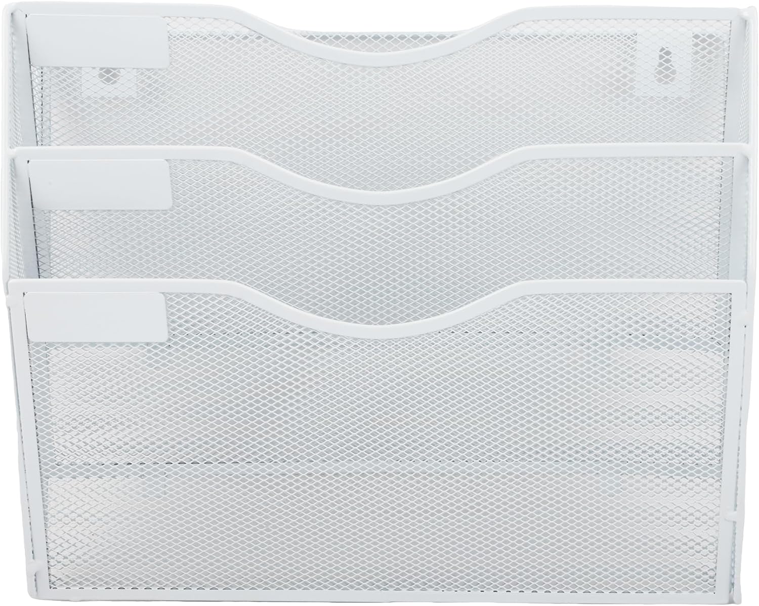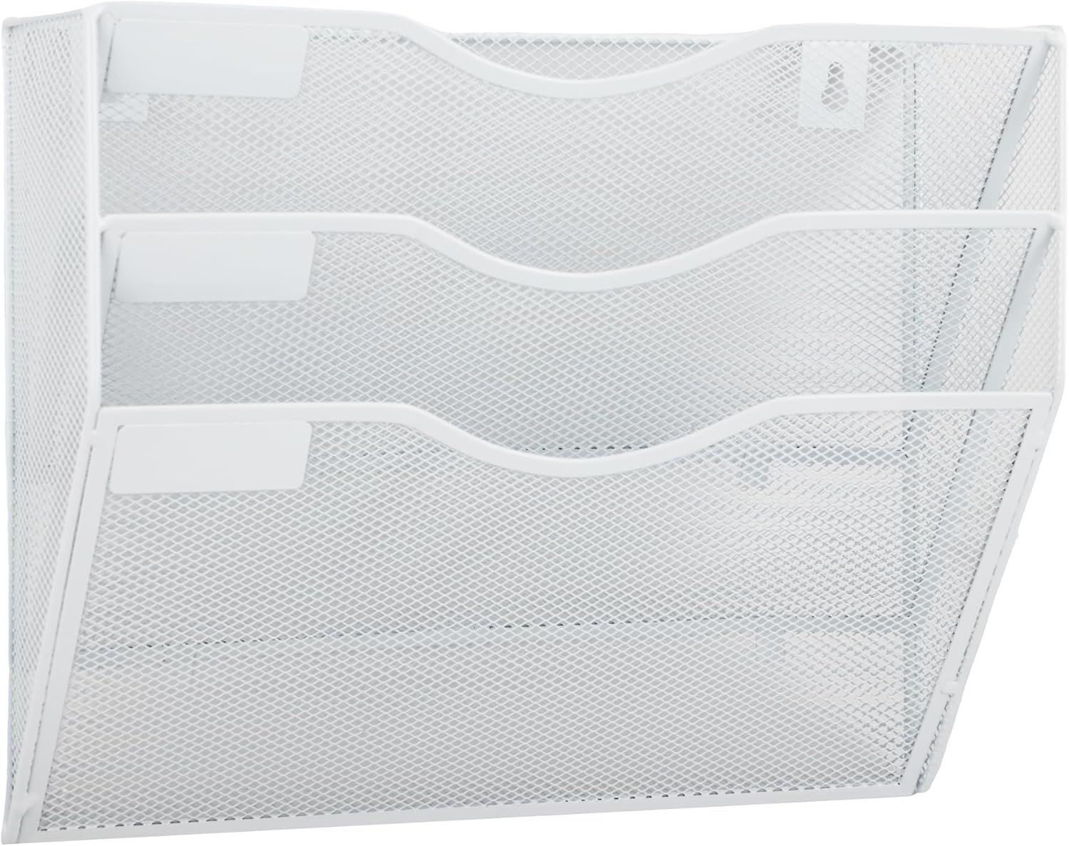 EASEPRES 3 Pocket Mesh Hanging Wall File Organizer, Wall Mounted Mail Paper Document Folder Holder, Clipboard Storage Organization Magazine Rack with Nametag Label for Office Home School, White