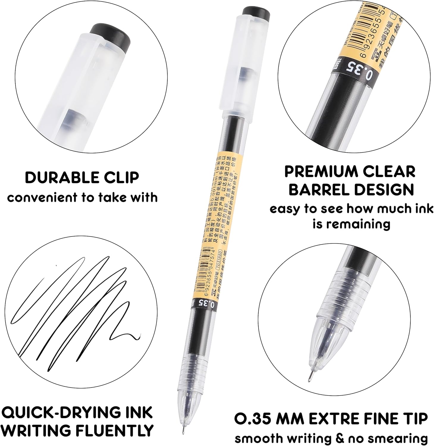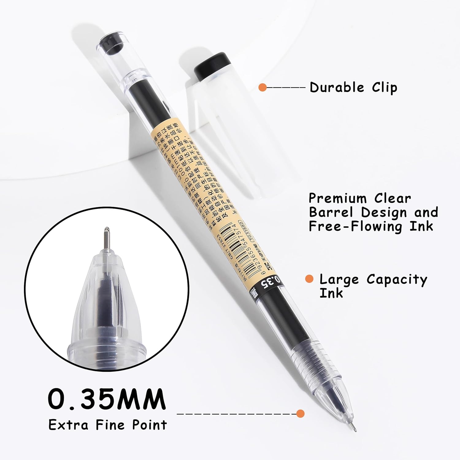 - Fine Writing Experience:This set of 12 bulk, 0.35 mm thin lined black gel pens with ultra fine point pen offers smooth writing, similar to premium rollerball pens. Ideal for bullet journaling, art projects, and office/school note taking, great for calligraphy lovers and journaling enthusiasts, ensuring neat lines.