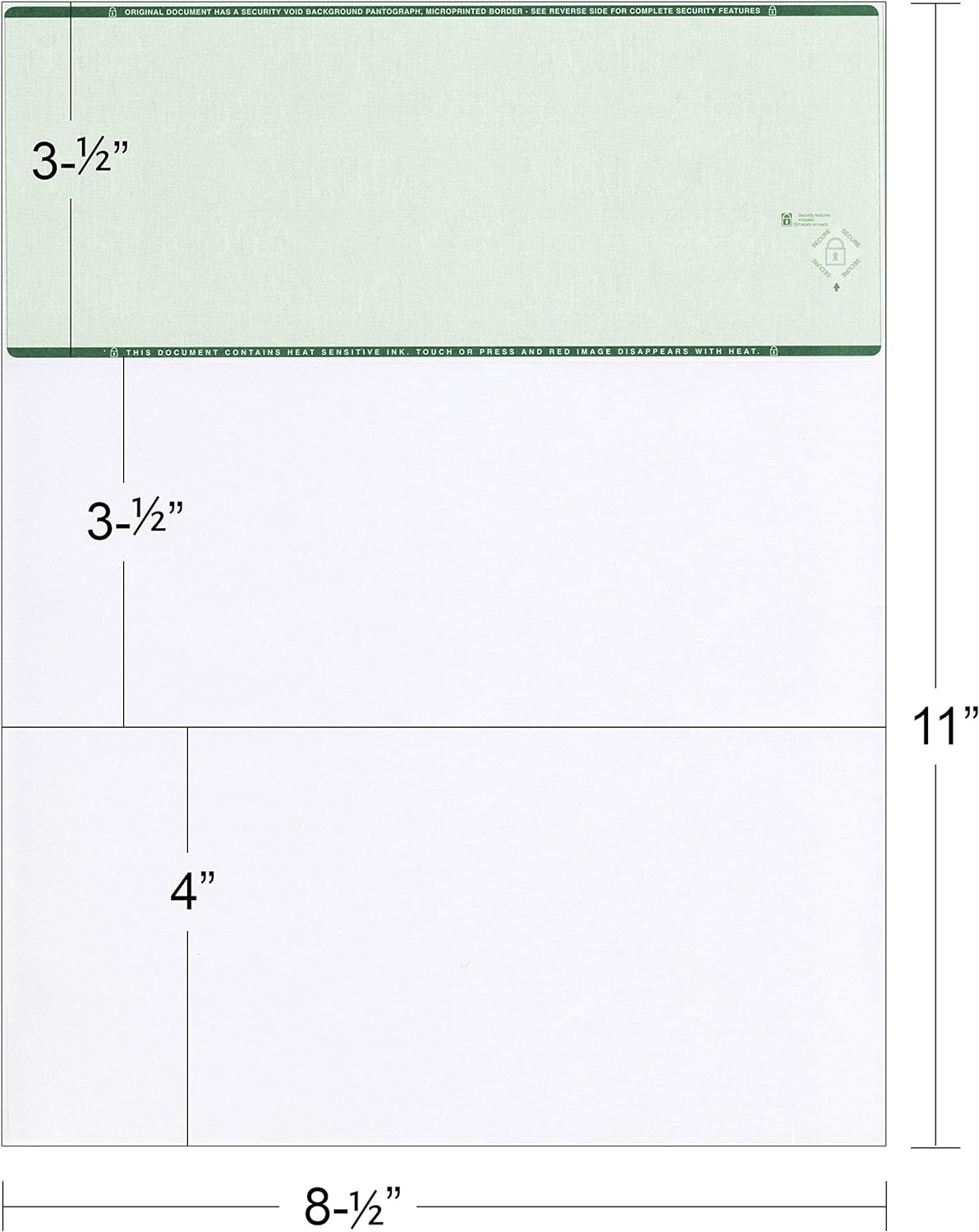 Green High Security Checks on Top Compatible w/QB accounting software - Custom Computer Checks on Top (2000)