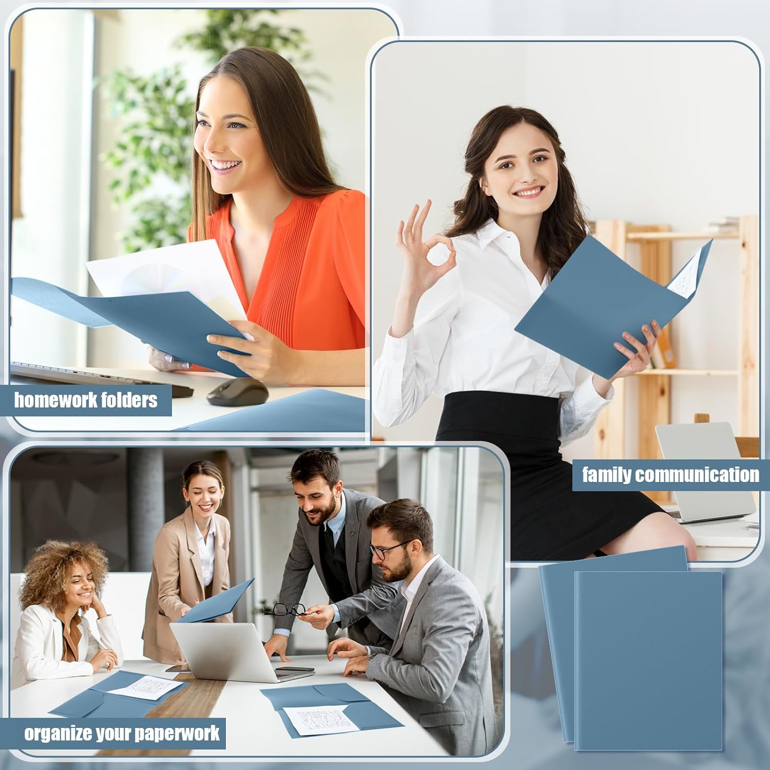 Gueevin 50 Pcs Plastic Folders with Pockets, Back to School Two Pocket Folder Fit Letter Size, Heavy Duty School Business Card Holder for Home Office, 11. 61 x 9. 45 Inches (Blue Gray)