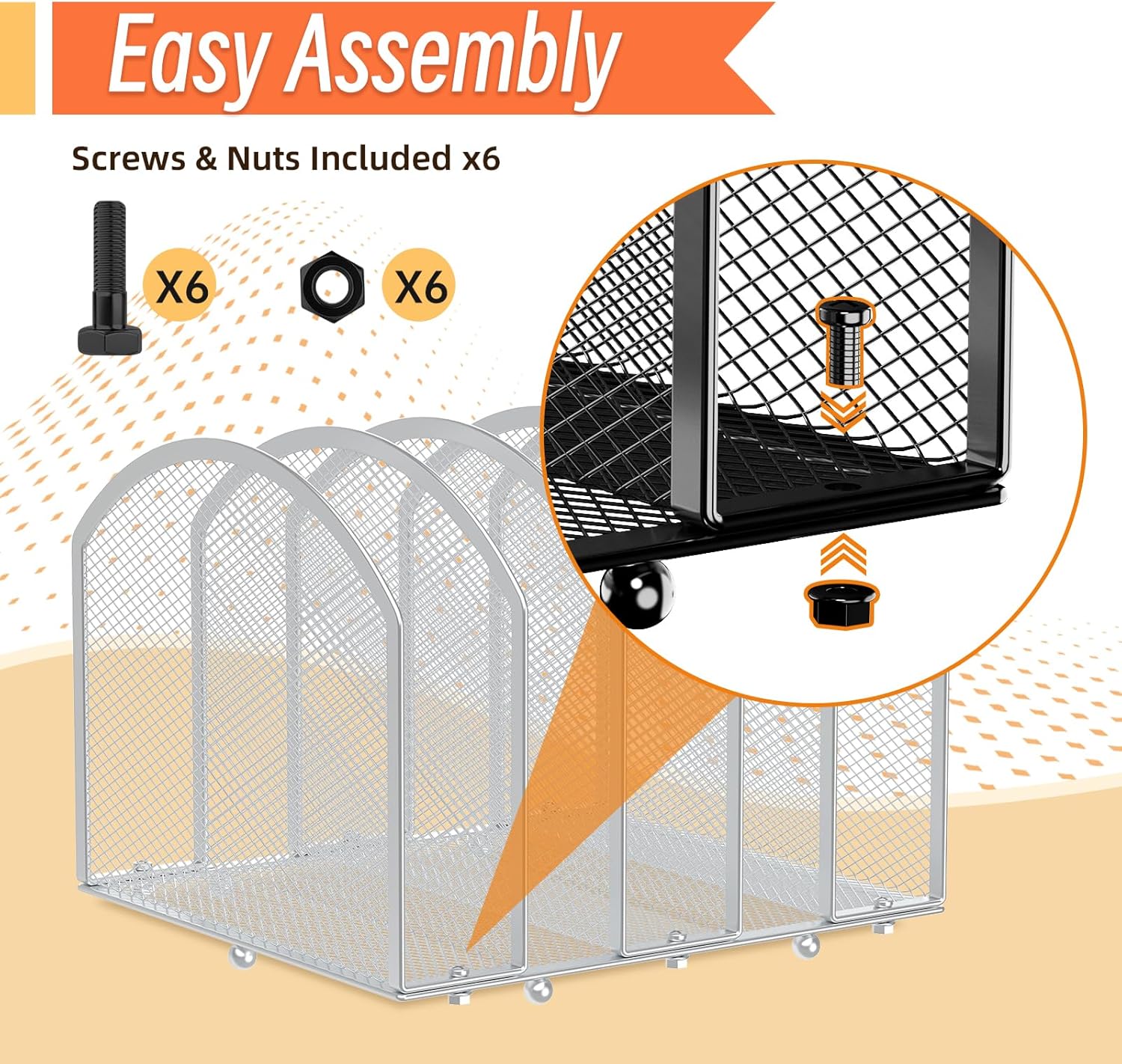 - Easy to Assemble: The file organizer for desk is easy to assemble and compact enough for easy storage when not in use.【WARM NOTE】Do not tighten the screws too tightly before all parts completely put together, If there is no alignment between the screws and holes position please push them aligning with a little bit strength then tighten the screws.