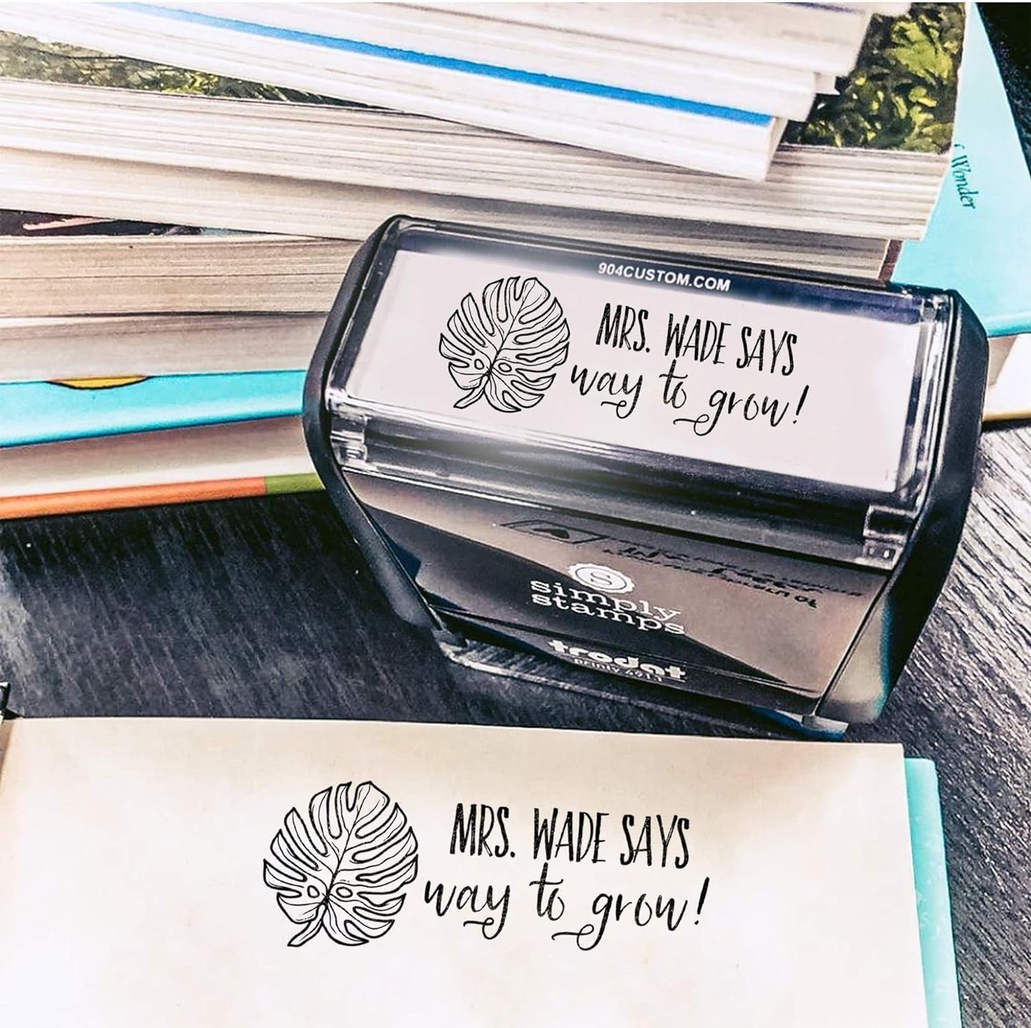Custom Self-Inking Teacher Stamps | 49 Designs | Fun Phrases | Grading Made Easy | Classroom and Library Book Stamps (Way to Grow, Xtra Large)