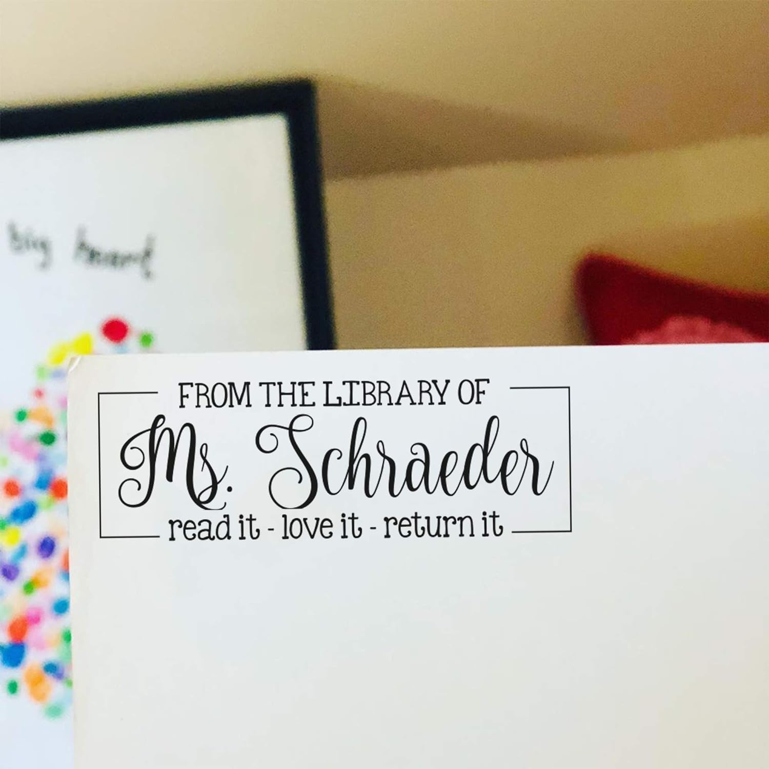 Custom Self-Inking Stamps | 49 Designs | Fun Phrases | Grading Made Easy | Xtra Wide Classroom & Library Book Stamps (from The Library of - Read, Love, Return)