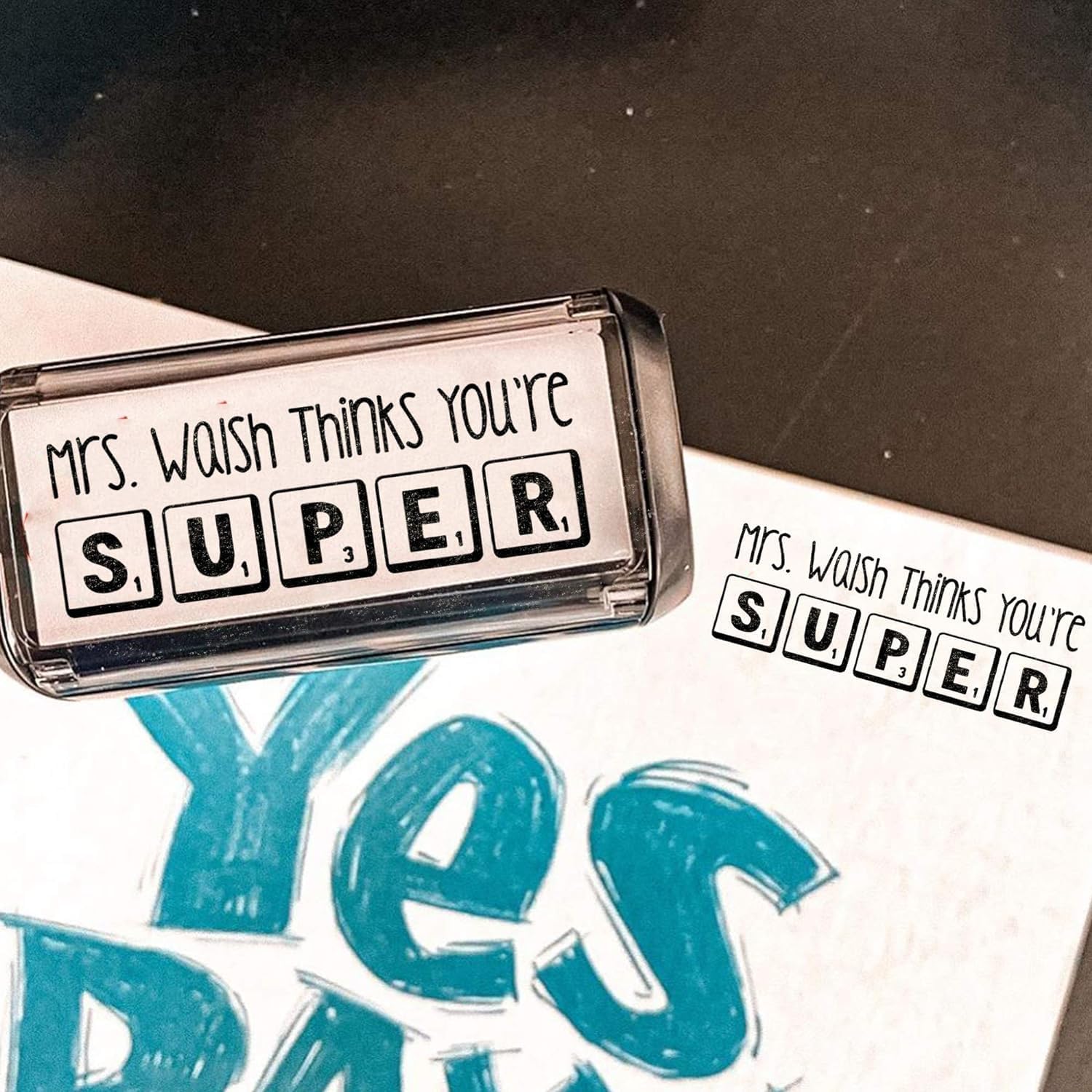 Custom Self-Inking Stamps | 49 Designs | Fun Phrases | Grading Made Easy | Classroom & Library Book Stamps (Super Tiles, Xtra Wide)