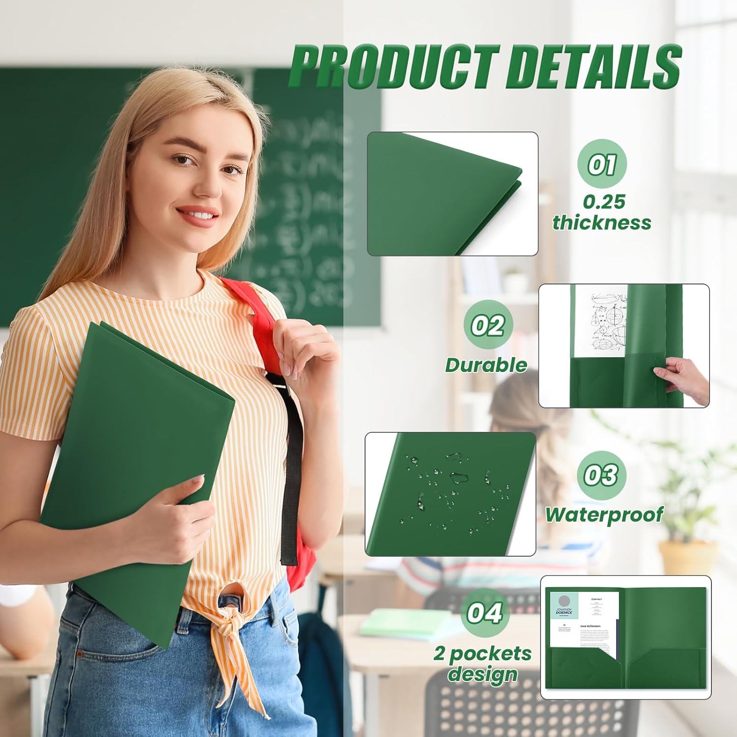 - Enough Quantity to Use and Replace: you will receive 50 pieces dark green plastic folders, each is designed with 2 pockets, fitting 8.5 x 11 inch letter size paper; Each pocket can stack 50 pages of letter size paper easily and neatly