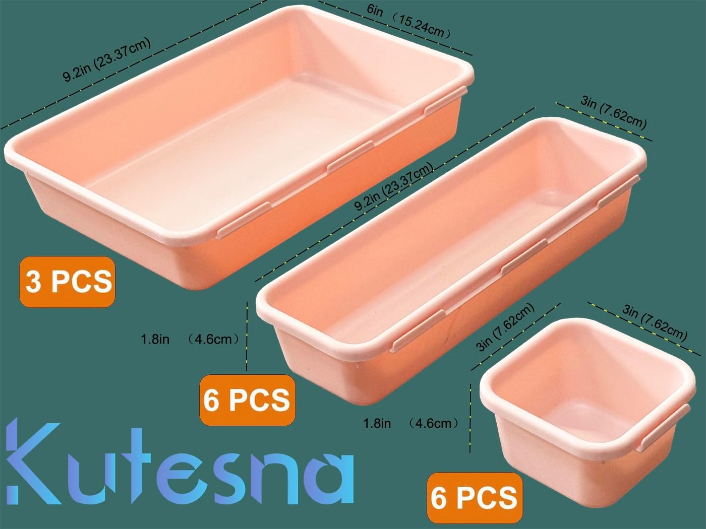 - 【Stackable】The organizer trays can be stacked together when not use, or each one works alone.Set includes:3 Pack *( 9.2 L x 6 W x 1.8 H in), 6 Pack* ( 9.2 L x 3 W x 1.8 H in), 6 Pack* ( 3 L x 3 W x 1.8 H in)