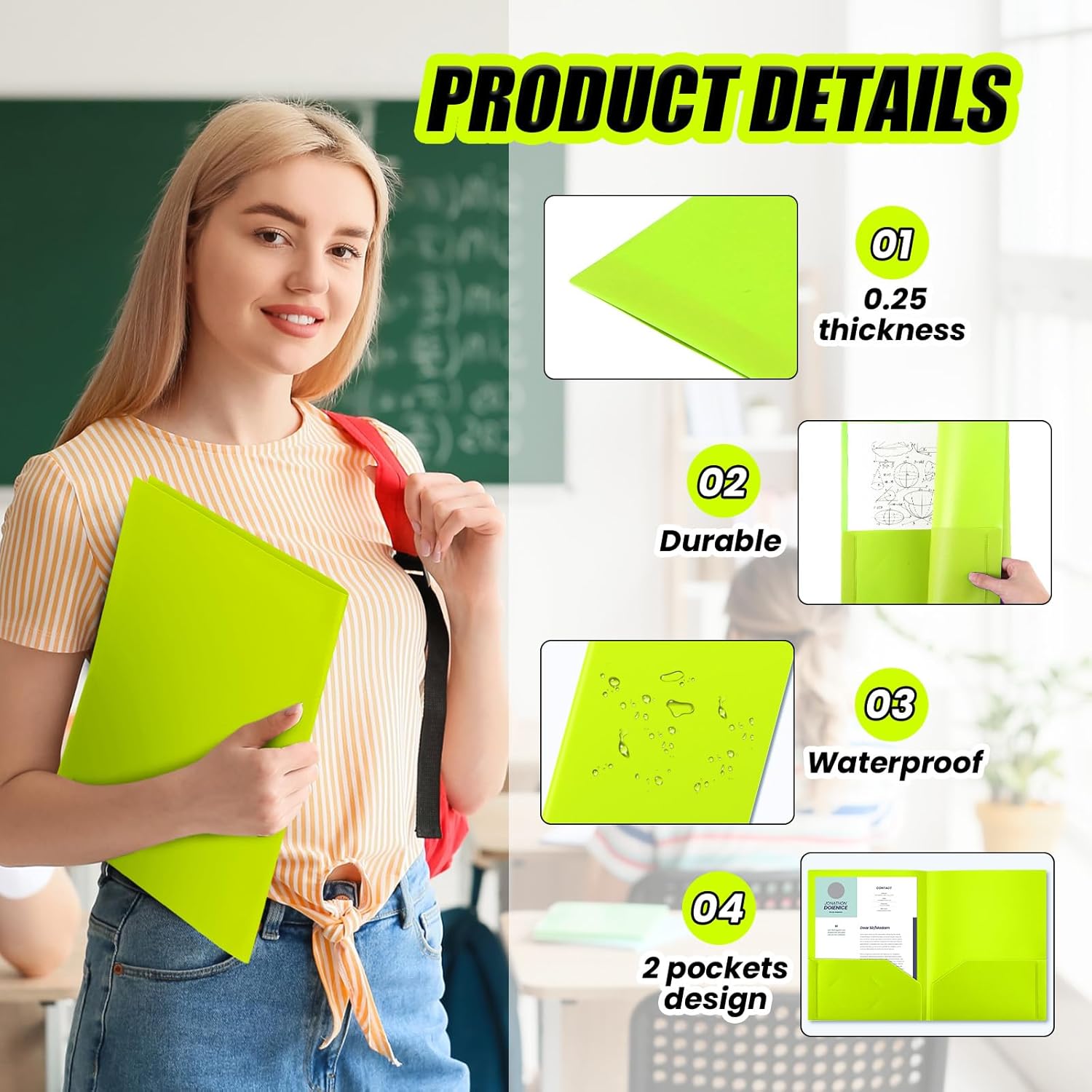 - Flexible 2 Pocket Design: each letter size lime green folders with pockets is designed with 2 pockets; This design allows you to easily insert papers without stapling, which not only reduces the complicated steps of use, but also maximizes the loading capacity, which is very practical