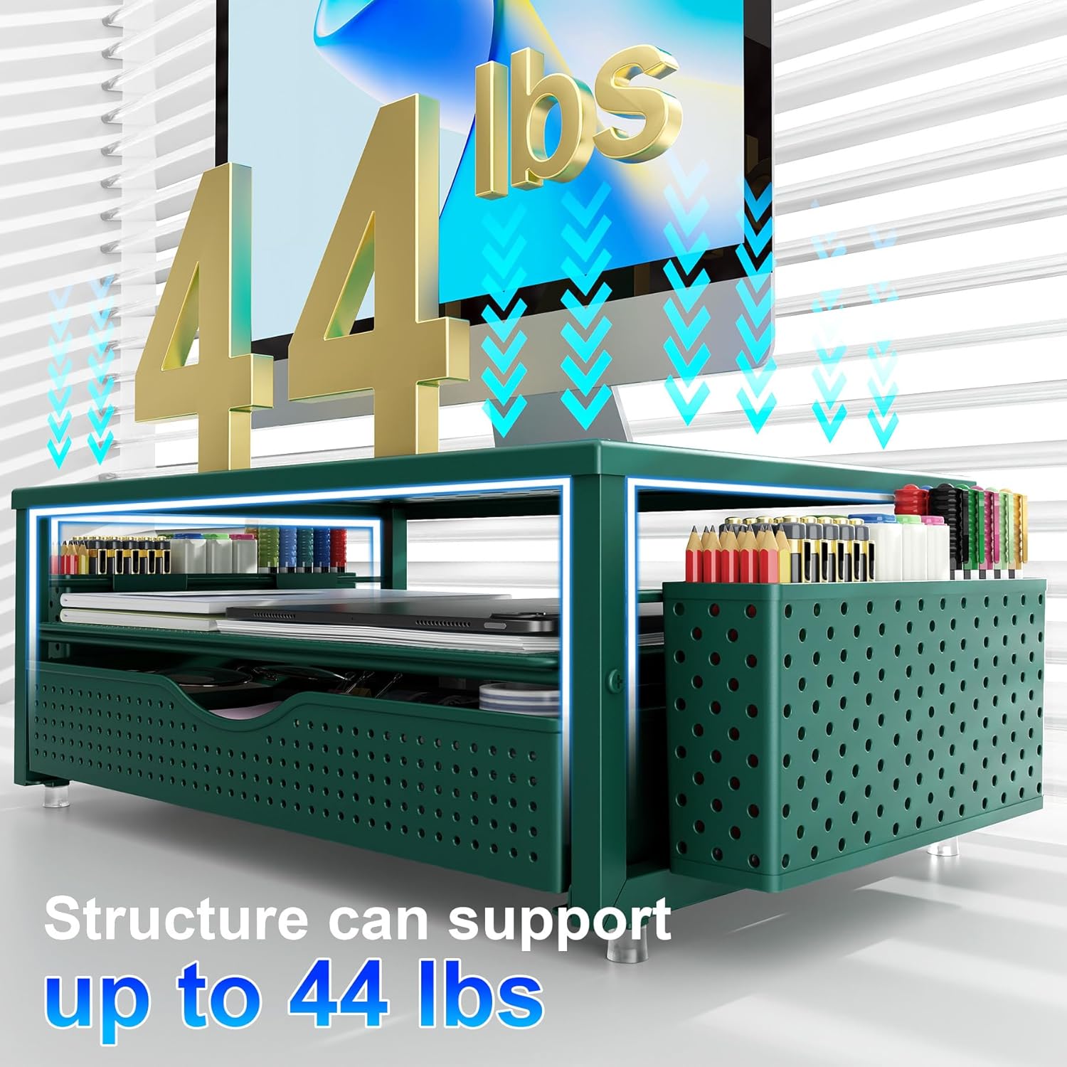 gianotter Desk Organizers and Accessories, Monitor Stand with Drawer and 2 Pen Holder, Desktop Organizer Suitable for Offices and Dormitories (Green)