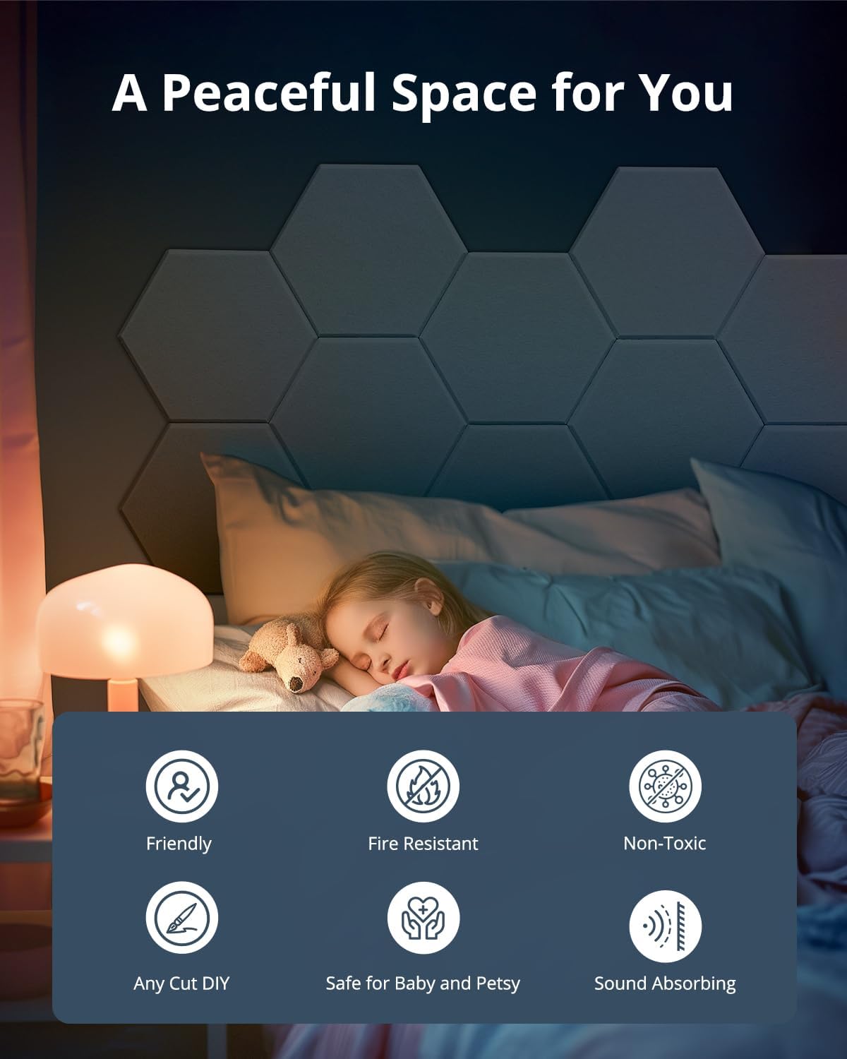 - HEXAGONAL STYLISH DESIGN: Add a touch of modern elegance to any room with our hexagon soundproof wall panels. These sleek and stylish sound proof foam panels for walls not only improve sound quality but also serve as eye-catching decorative elements, elevating the aesthetic appeal of your space.