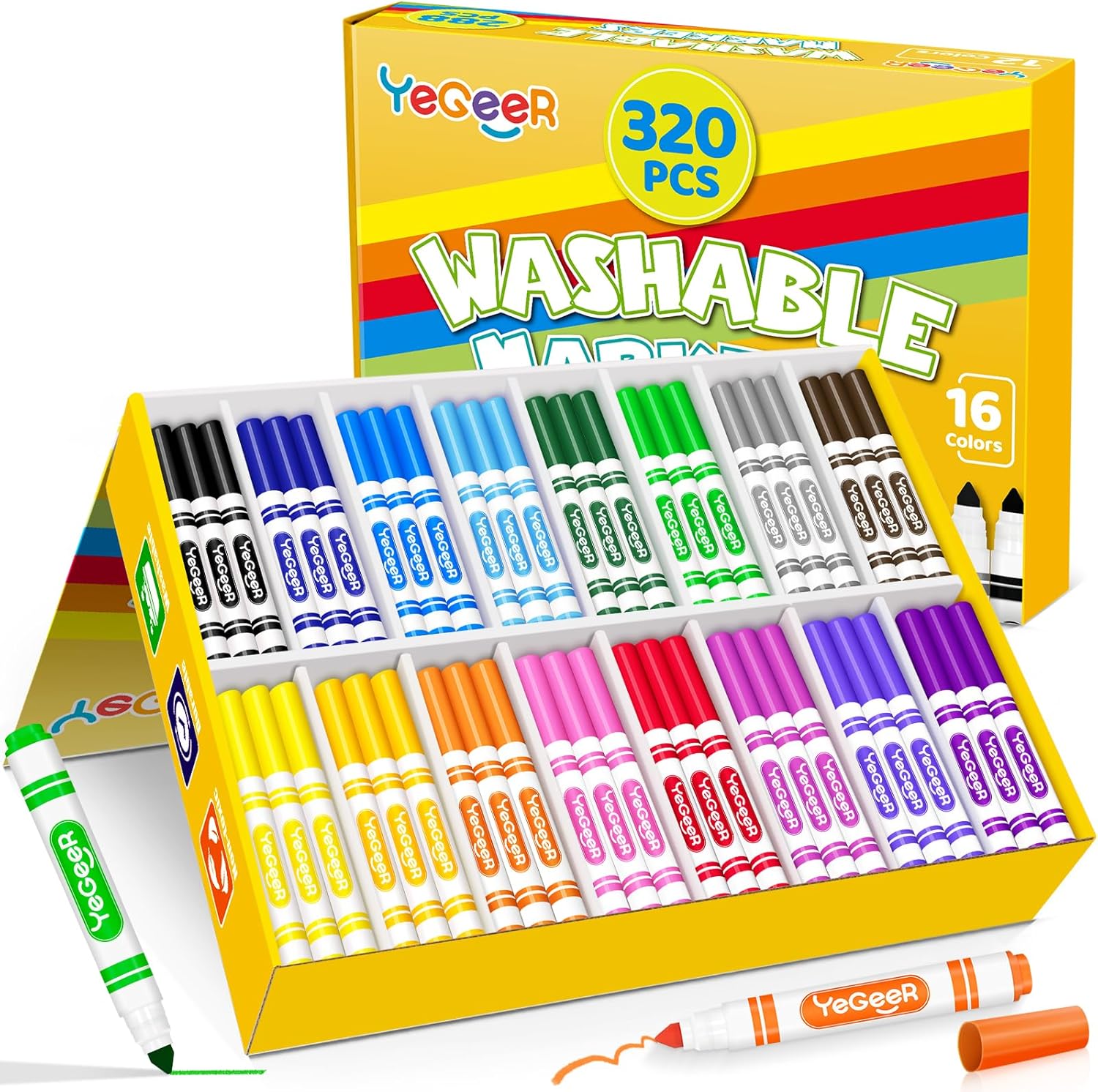 320 Count Washable Markers Bulk – 16 Assorted Colors, Broad Tip Markers for Kids, Teachers, and Classroom Supplies, Perfect for Art and Coloring.
